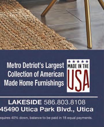Page 34 • March 12 — April 10, 2024 GROSSE ILE GRAND LIKE US ON FACEBOOK –GROSSE ILE GRAND W H I TE F UR N I T U R E ’ S Monday: 9:00am - 5:30pm Tuesday: 9:00am - 5:30pm Wednesday: 9:00am - 5:30pm Thursday: 9:00am - 5:30pm Friday: 9:00am - 8:30pm Saturday: 9:00am - 5:30pm White Furniture 3025 Biddle Avenue Wyandotte, MI 48192 734-282-2155 www.whitefurniture.com www.facebook.com/whitefurniture