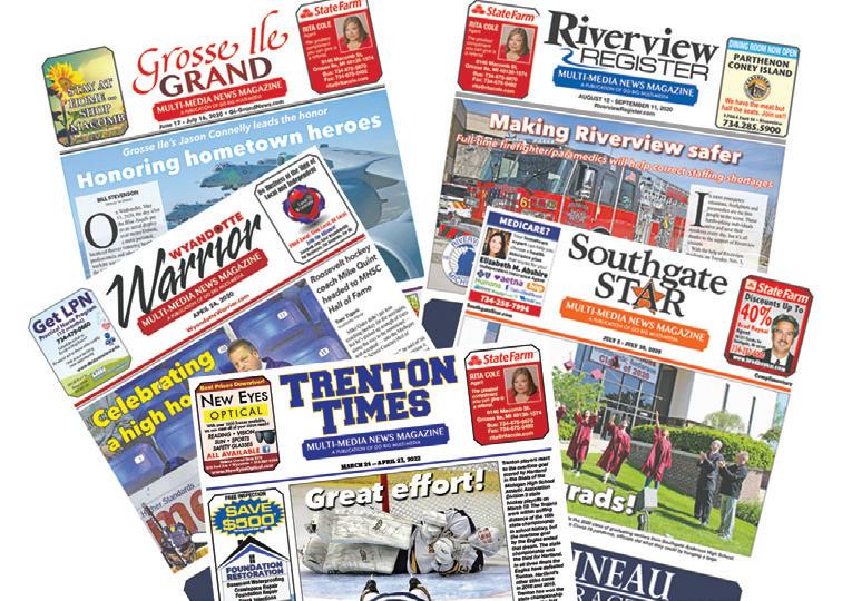 18271 FORT STREET • RIVERVIEW, MICHIGAN 48193 734-282-3939 Office@GoBigMultiMedia.com Featuring Great Editorials about... • Citizen Accolades • Community Events • Clubs & Organizations • School Activities, Academics & Sports • All with Great Photographs Plus Much More! A Professional Publication with Free Full Color on Every Page, in Every Ad. The Communities LOVE Them and... YOU WILL GET RESULTS! YOUR FAMILY OF COMMUNITY NEWS MAGAZINES