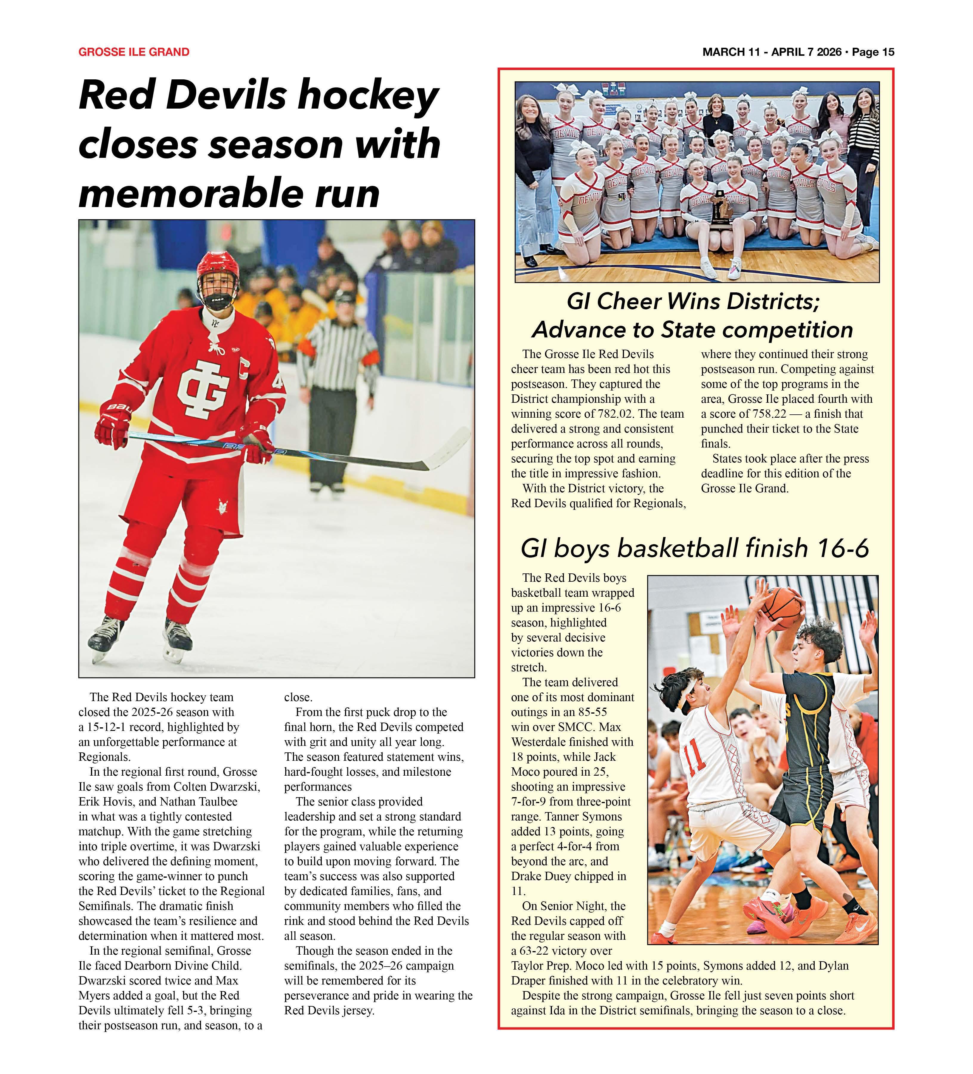The Red Devils hockey team closed the 2025-26 season with a 15-12-1 record, highlighted by an unforgettable performance at Regionals.