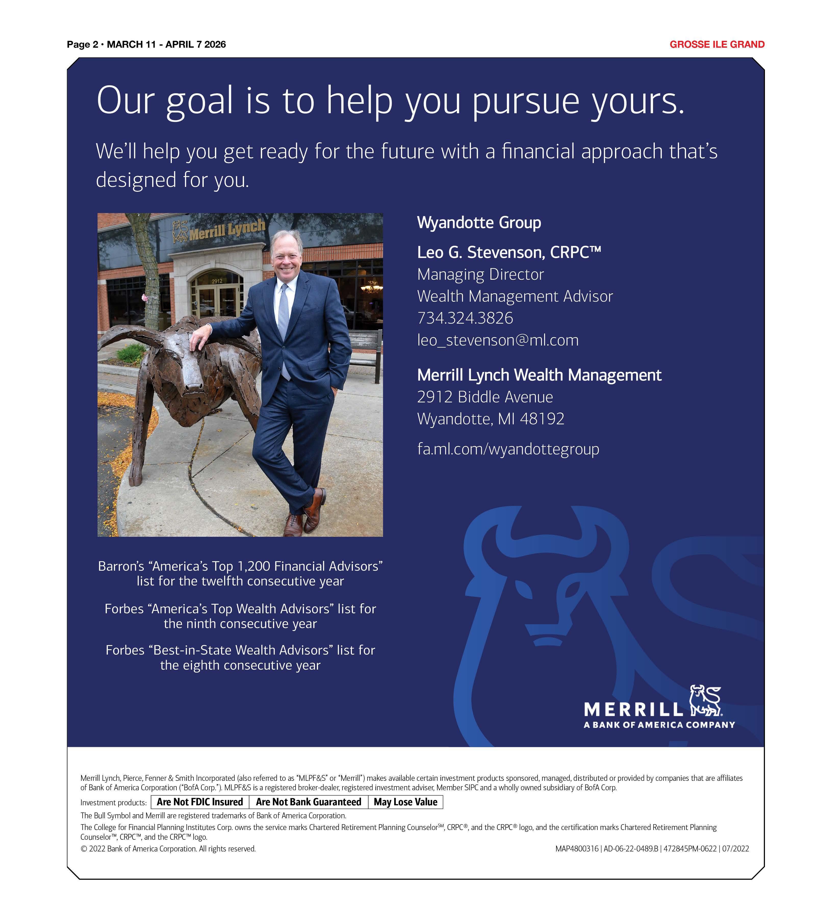 I The Bull Symboland Merrill are registeredtrademarksof Bankof AmericaCorporation. The Collegefor FinancialPlanningInstitutes Corp.owns the servicemarksCharteredRetirementPlanningCounselor5M, CRPC®,and the CRPC®logo,and the certification marksCharteredRetirementPlanning Counselor™,CRPC™,and the CRPC™logo. © 2022 Bankof AmericaCorporation.All rights reserved.