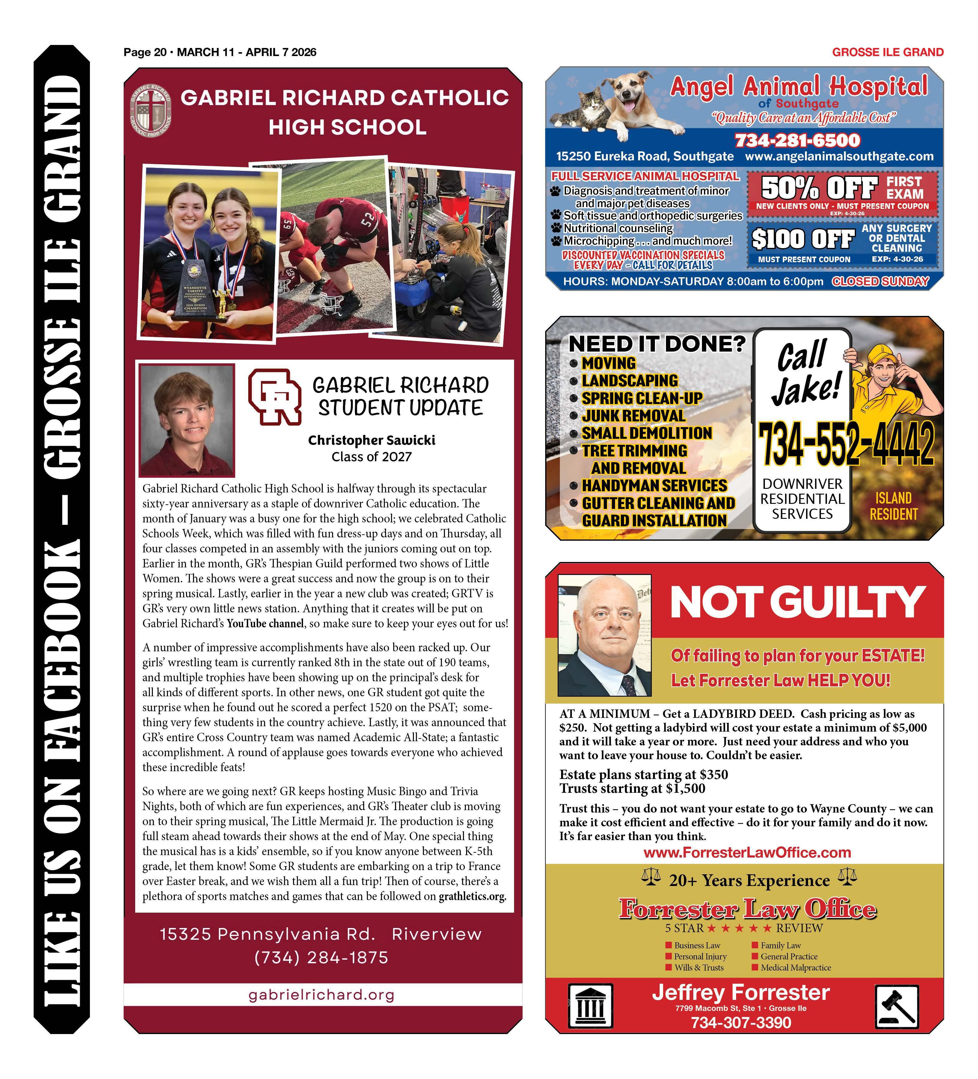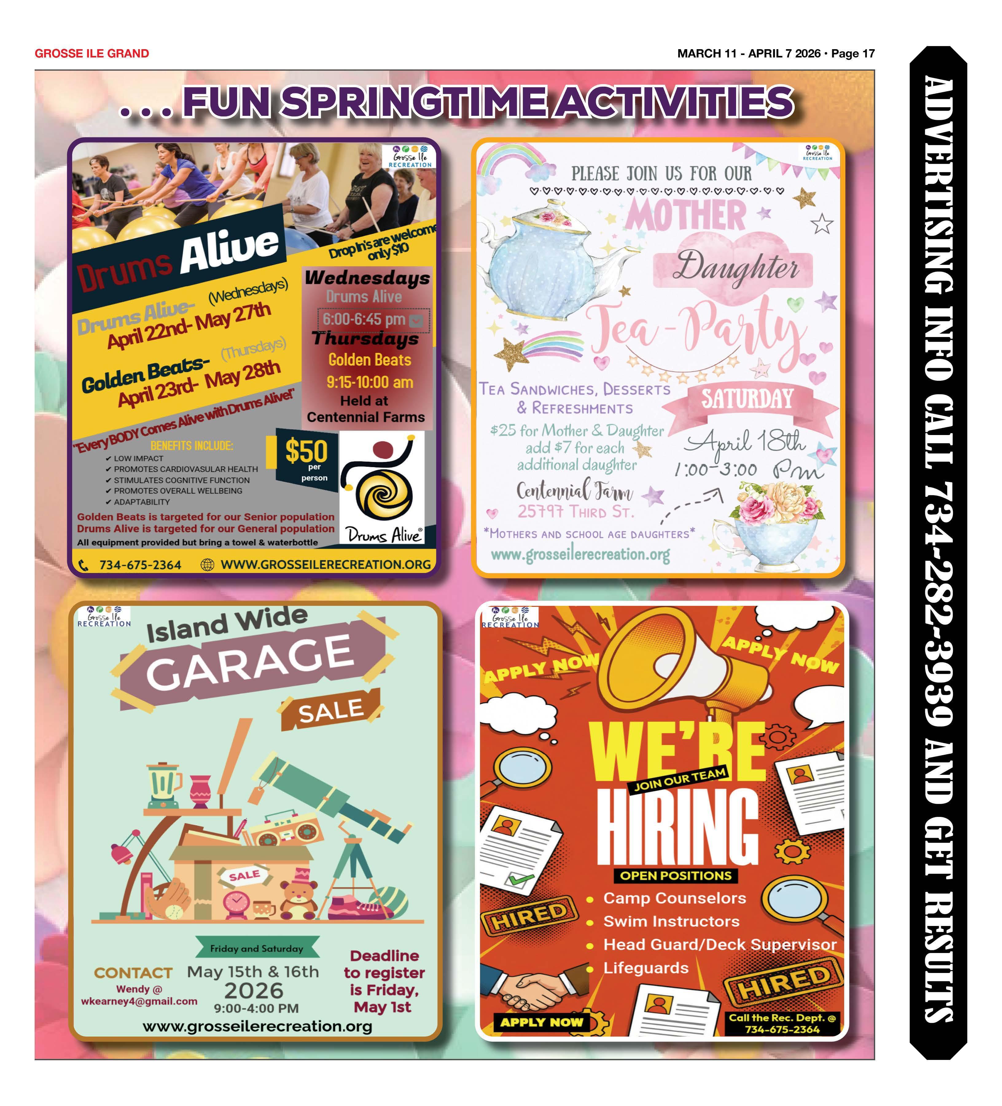 Our committee is in the early stages of developing an Instagram page with the help of our student liaisons and members of the committee. We regularly provide updates and important content to the Township eNewsletter. We utilize social media to publicize our events, and regularly contribute to your favorite hometown newspaper, The Grosse Ile Grand, delivered to every business and home on the Island!