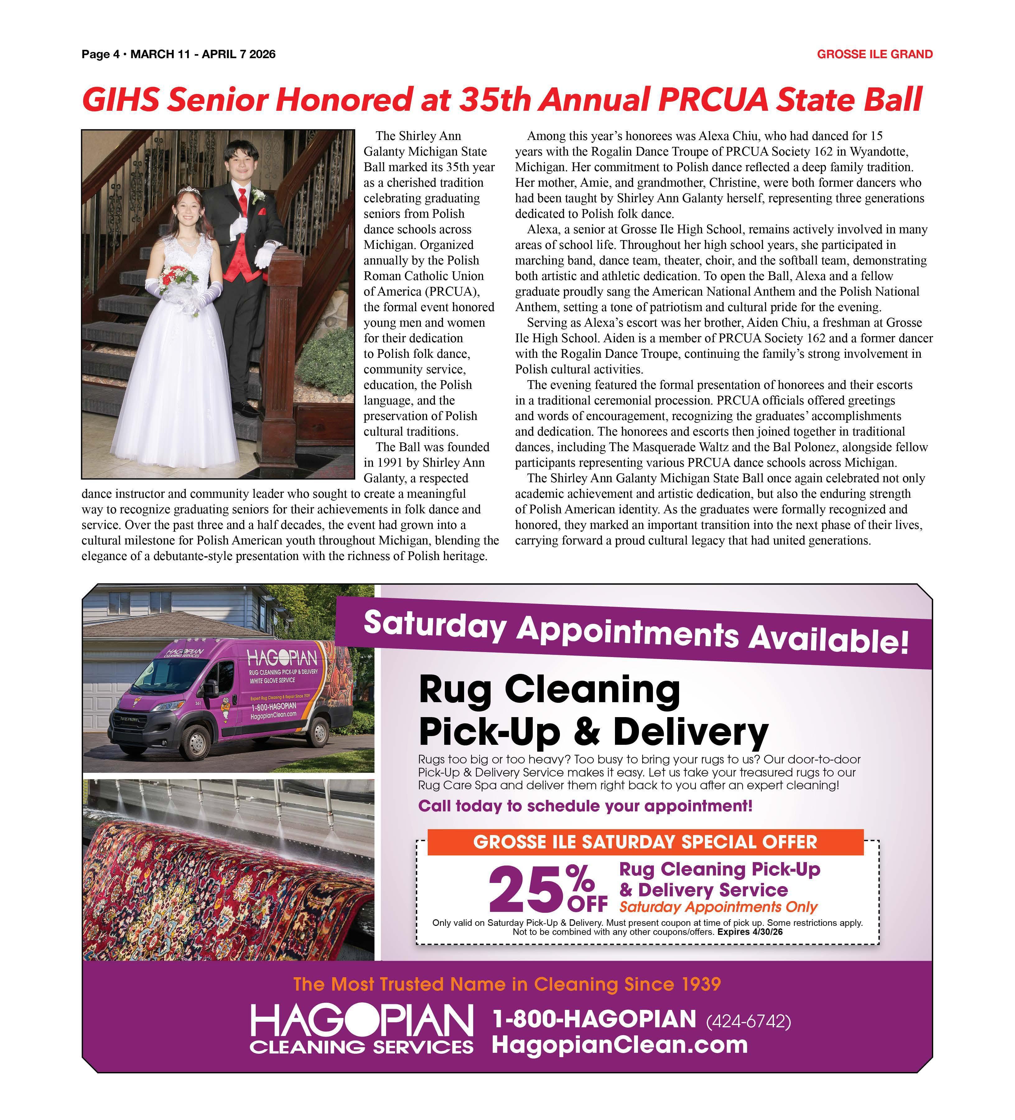 The Shirley Ann Galanty Michigan State Ball marked its 35th year as a cherished tradition celebrating graduating seniors from Polish dance schools across Michigan. Organized annually by the Polish Roman Catholic Union of America (PRCUA), the formal event honored young men and women for their dedication to Polish folk dance, community service, education, the Polish language, and the preservation of Polish cultural traditions.
