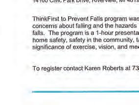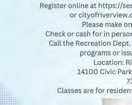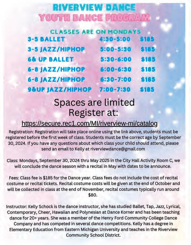 For any additional information or to schedule an appointment, please call the Riverview Recreation Office at 734-281-4219.