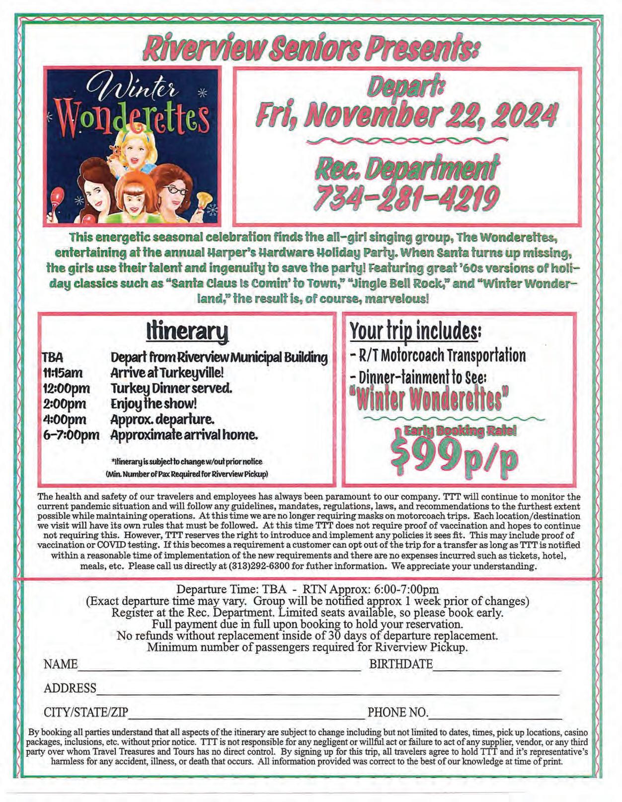 My fellow Riverview residents, As summer comes to a close and our kids head back to school, I’d like to reflect on the wonderful summer we’ve shared. From the exciting recreation and library programs to the lively concerts, it’s been a season full of joy and togetherness. Our Recreation Department and Riverview Veterans Memorial Library truly went above and beyond this year. Thanks to the dedication of Recreation Director Todd Dickman and Library Director Azita Fratarelli, there was never a dull moment. From activities for kids to events for our cherished seniors, there was always something fun and engaging. We wrapped up summer on a high note with a Pizza Bingo that had the kids buzzing with excitement, and a cozy indoor picnic, sponsored by the Kiwanis of Riverview, that our seniors thoroughly enjoyed.