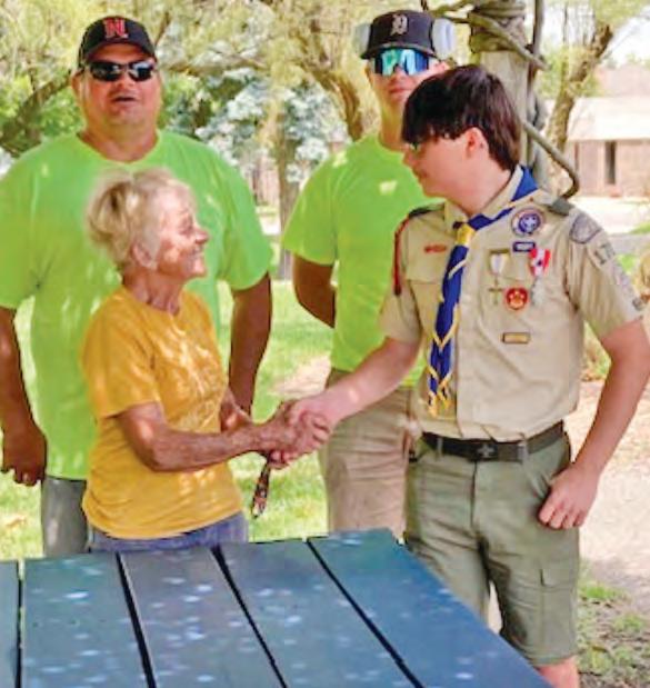 For his Eagle Project, Gage chose to address a significant community need: accessibility at public picnic areas. Motivated by personal experience and empathy, Gage aimed to ensure that all community members, regardless of mobility, could comfortably enjoy outdoor spaces with their families. He chose to build three wheelchairaccessible picnic tables for the City of Trenton. “I liked the idea of making these picnic tables because my aunt could never sit with us when we had a picnic. She explained that she can’t lift her leg over the bench,” said Gage. He continued, “I found plans online for wheelchair accessible picnic tables and then altered them to make the benches even more accessible. I contacted Mayor Rzeppa to see if he would be interested in having these picnic tables for the City. He was very supportive!”