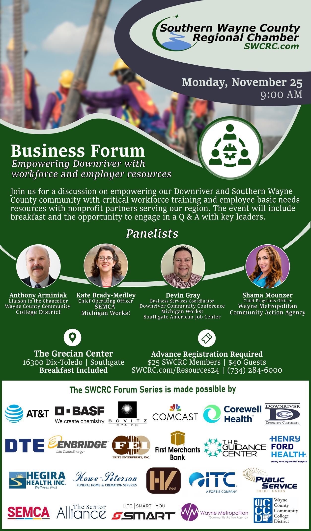 Join the Southern Wayne County Regional Chamber’s Morning Spark Networking Series at X-Golf in Woodhaven. Connect with business owners and vendors from across the Downriver region and kickstart your year with new opportunities.