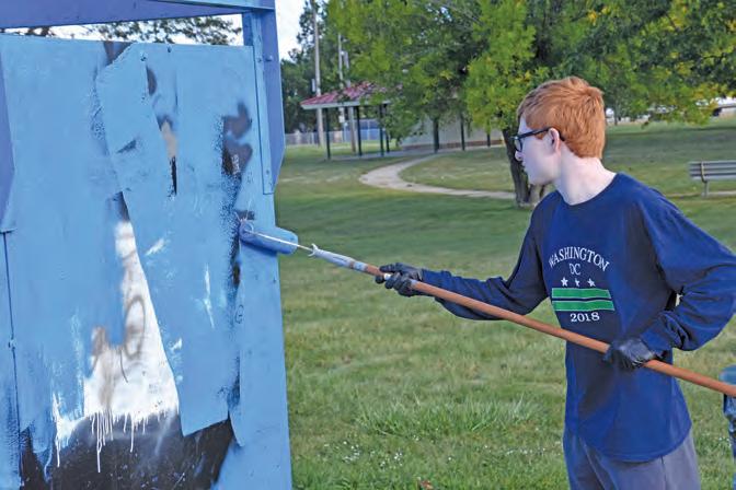 Student Glenn Ratledge, who used a paint roller during the Skate Park effort, said it was important to him to “get rid of the graffiti.” Classmate Jacob Meyers said the effort was both