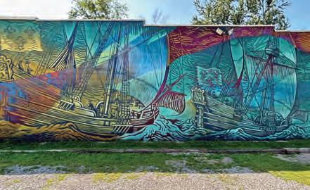 To date we have six buildings with murals of a muscle car to old ships to a map of the Island. My favorite is the first one you see turning onto Macomb Street which is a theme of Grosse Ile with boats, the bridge and the sun.