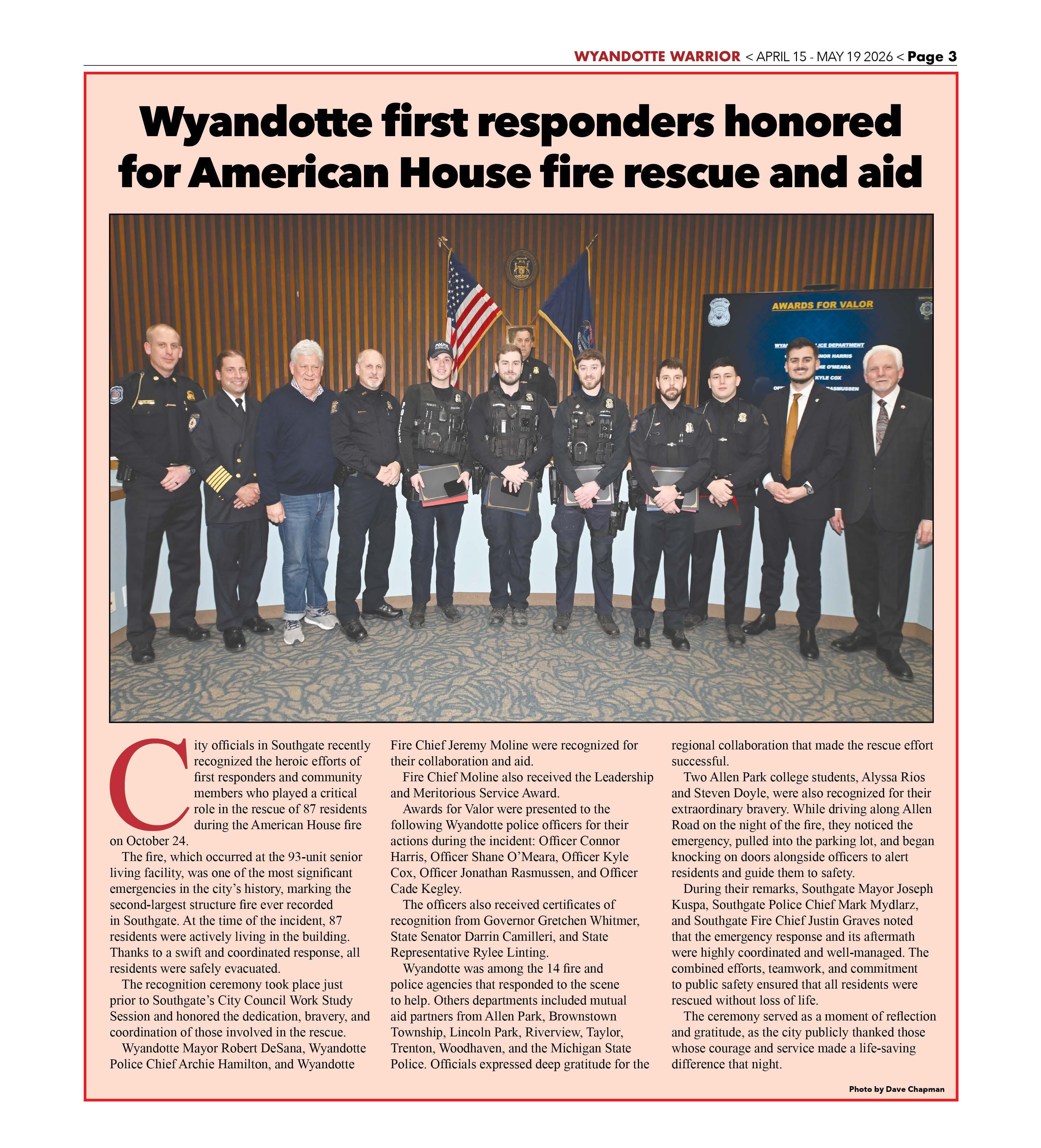 Wyandotte first responders honored for American House fire rescue and aid