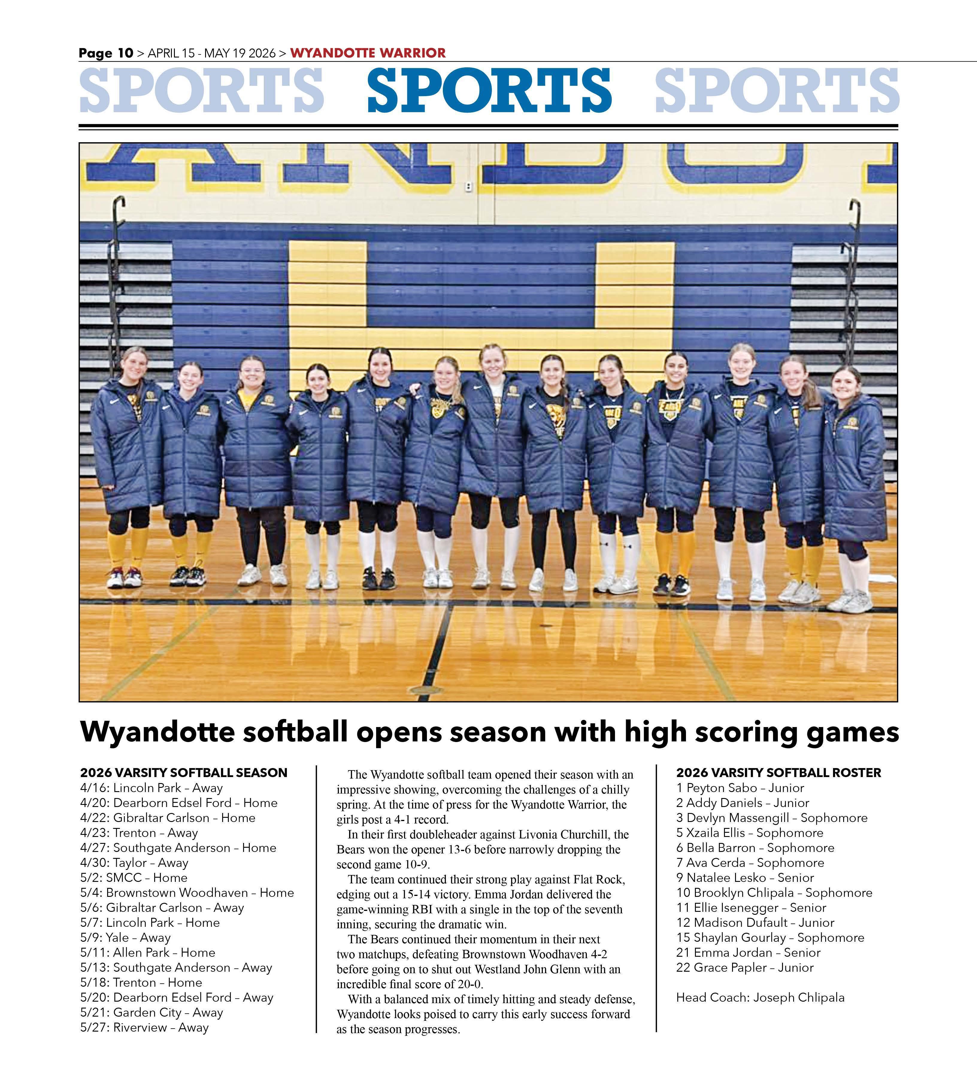The Wyandottesoftballteam opened theirseason with an impressiveshowing, overcomingthe challengesof a chilly spring.At the time of press for the WyandotteWarrior,the girls post a 4-1 record.