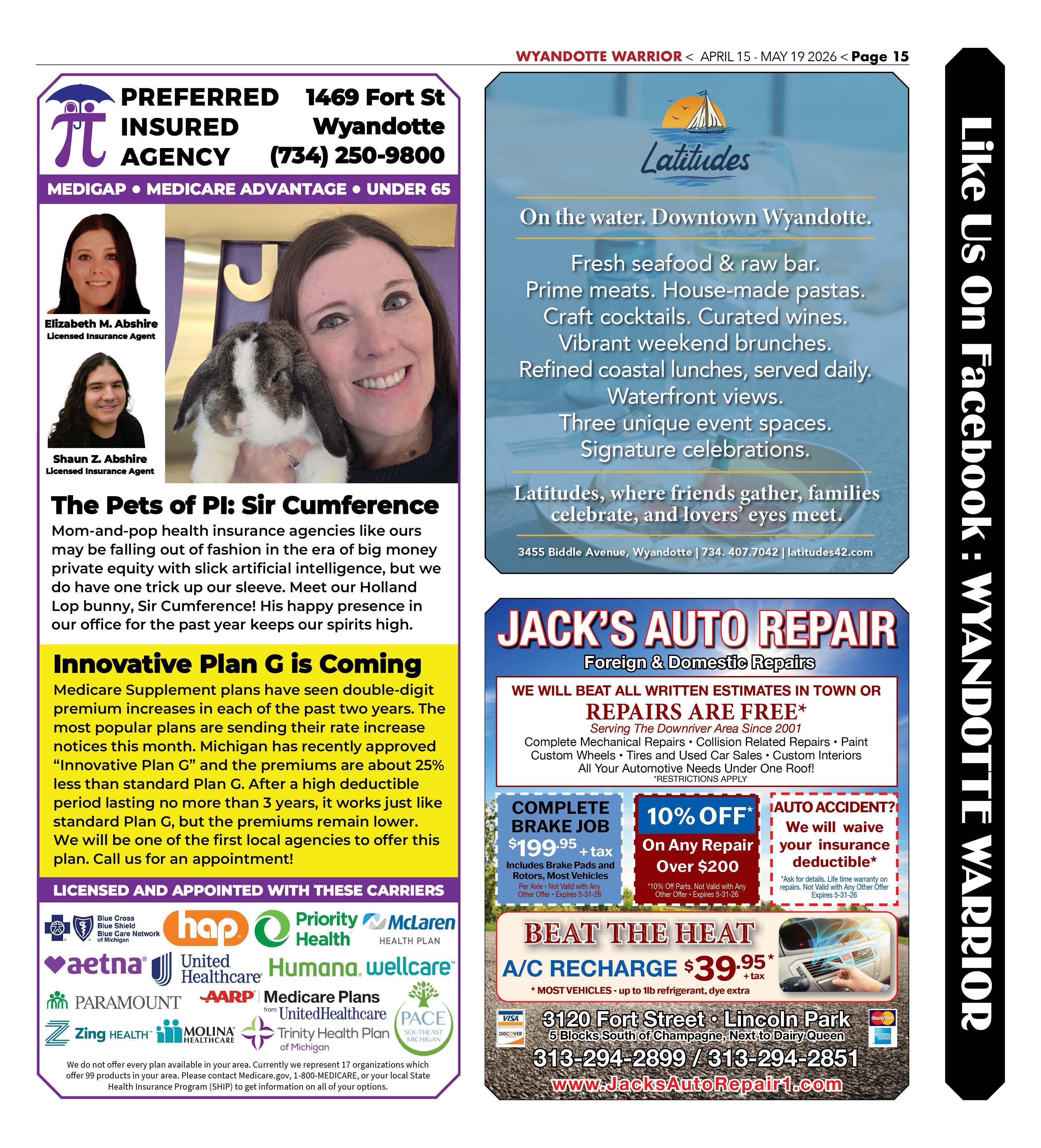 Medicare Supplement plans have seen double-digit premium increases in each of the past two years. The most popular plans are sending their rate increase notices this month. Michigan has recently approved "Innovative Plan G" and the premiums are about 25% less than standard Plan G. After a high deductible period lasting no more than 3 years, it works just like standard Plan G, but the premiums remain lower. We will be one of the first local agencies to offer this plan. Call us for an appointment!
