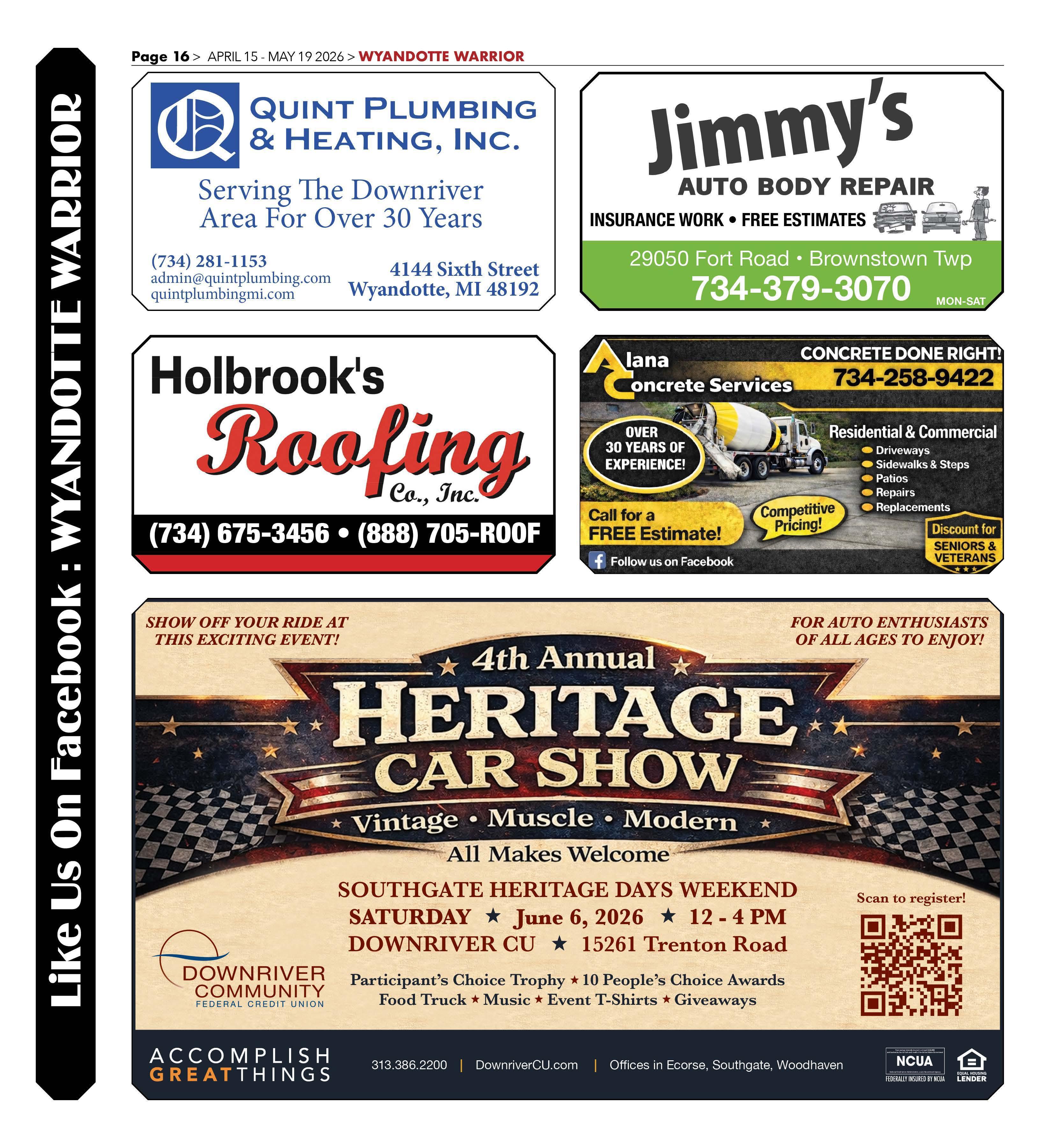 Due to ongoing renovations at the Flat Rock Community Auditorium, the concert will be held at The Daily Church, located at the comer of King Road and Dix-Toledo in Woodhaven.