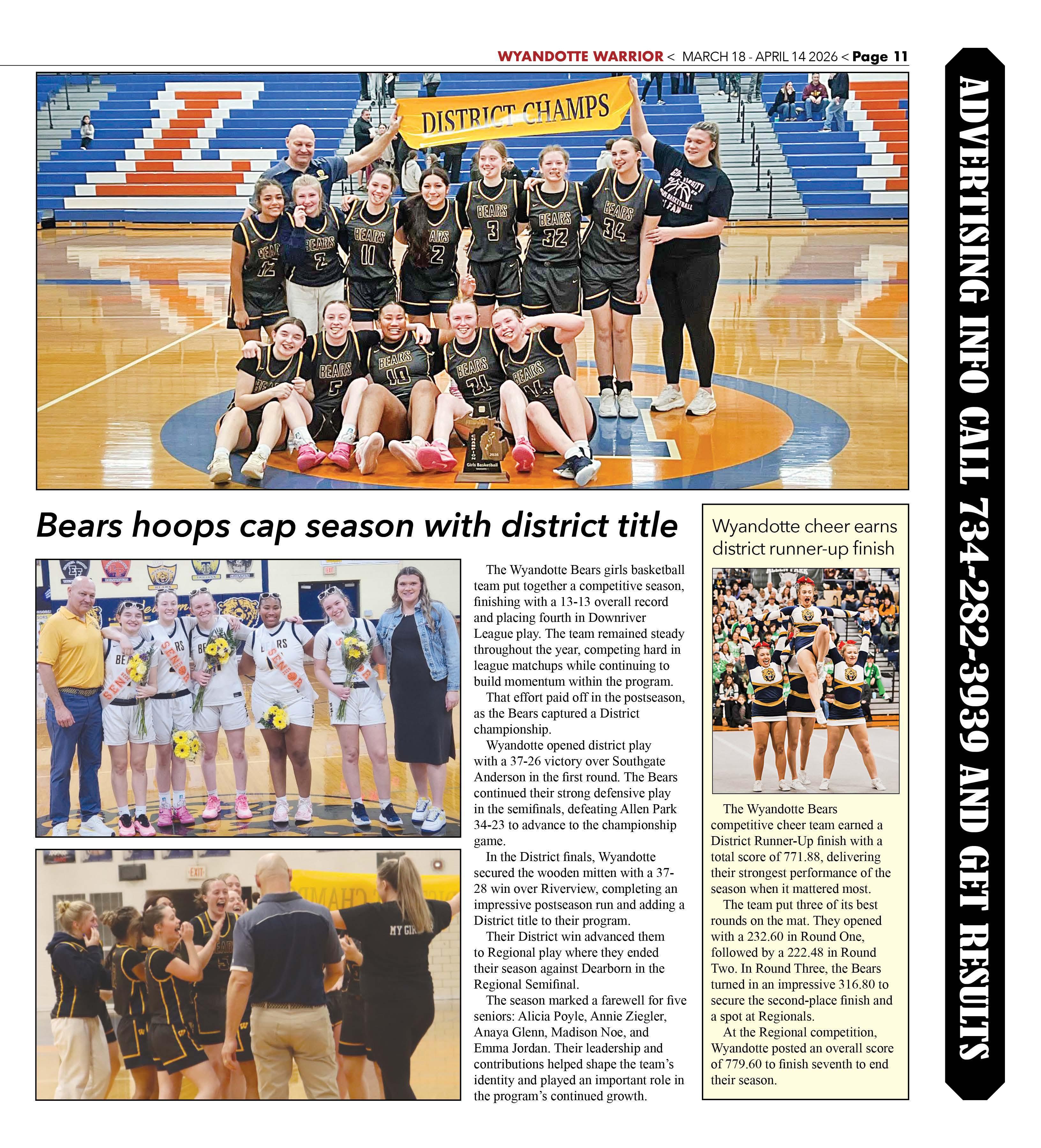 The Wyandotte Bears girls basketball team put together a competitive season, finishing with a 13-13 overall record and placing fourth in Downriver League play. The team remained steady throughout the year, competing hard in league matchups while continuing to build momentum within the program.