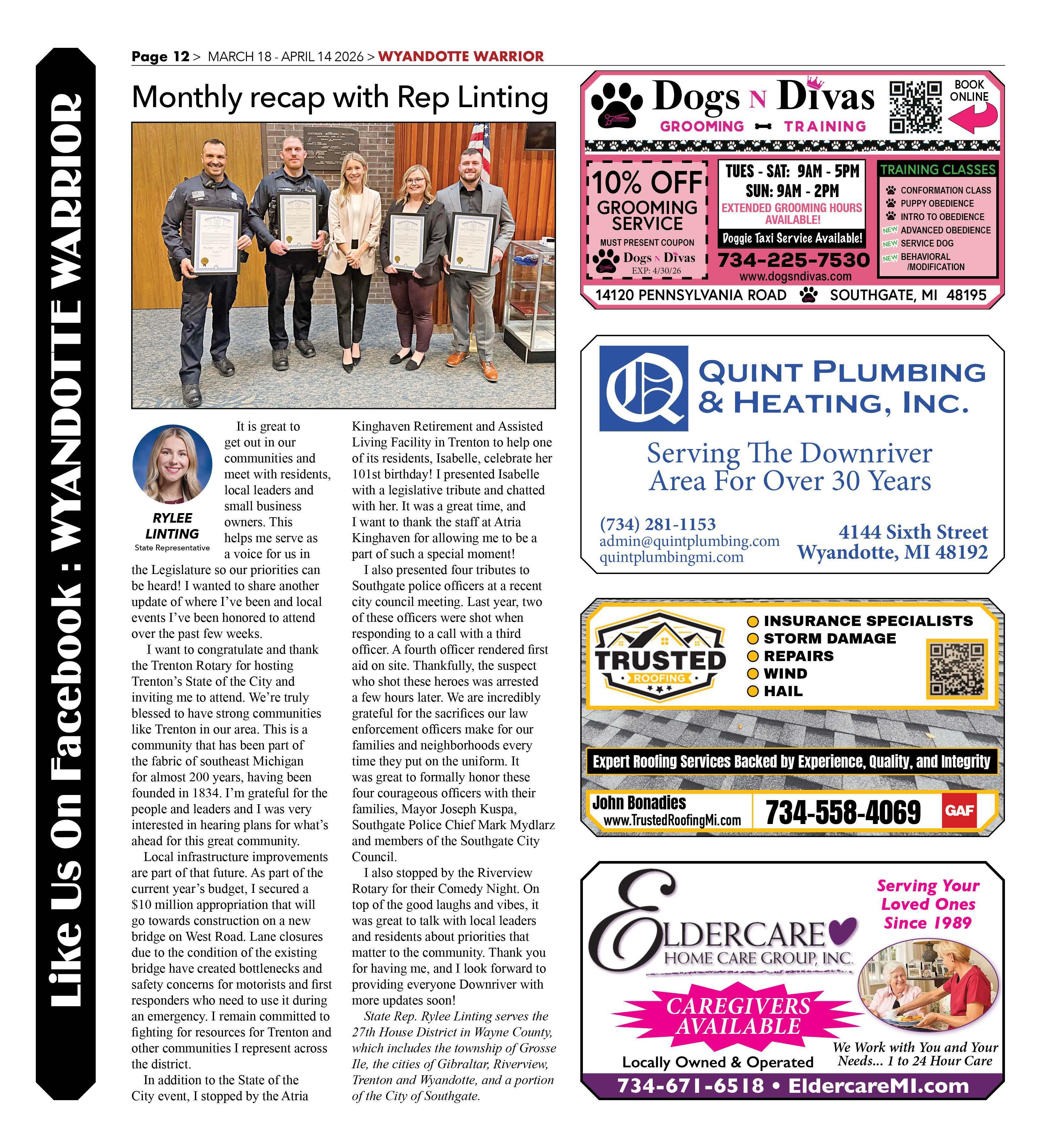 State Rep. Rylee Linting serves the 27th House District in Wayne County, which includes the township of Grosse Ile, the cities of Gibraltar, Riverview, Trenton and TTyandotte,and a portion of the City of Southgate.