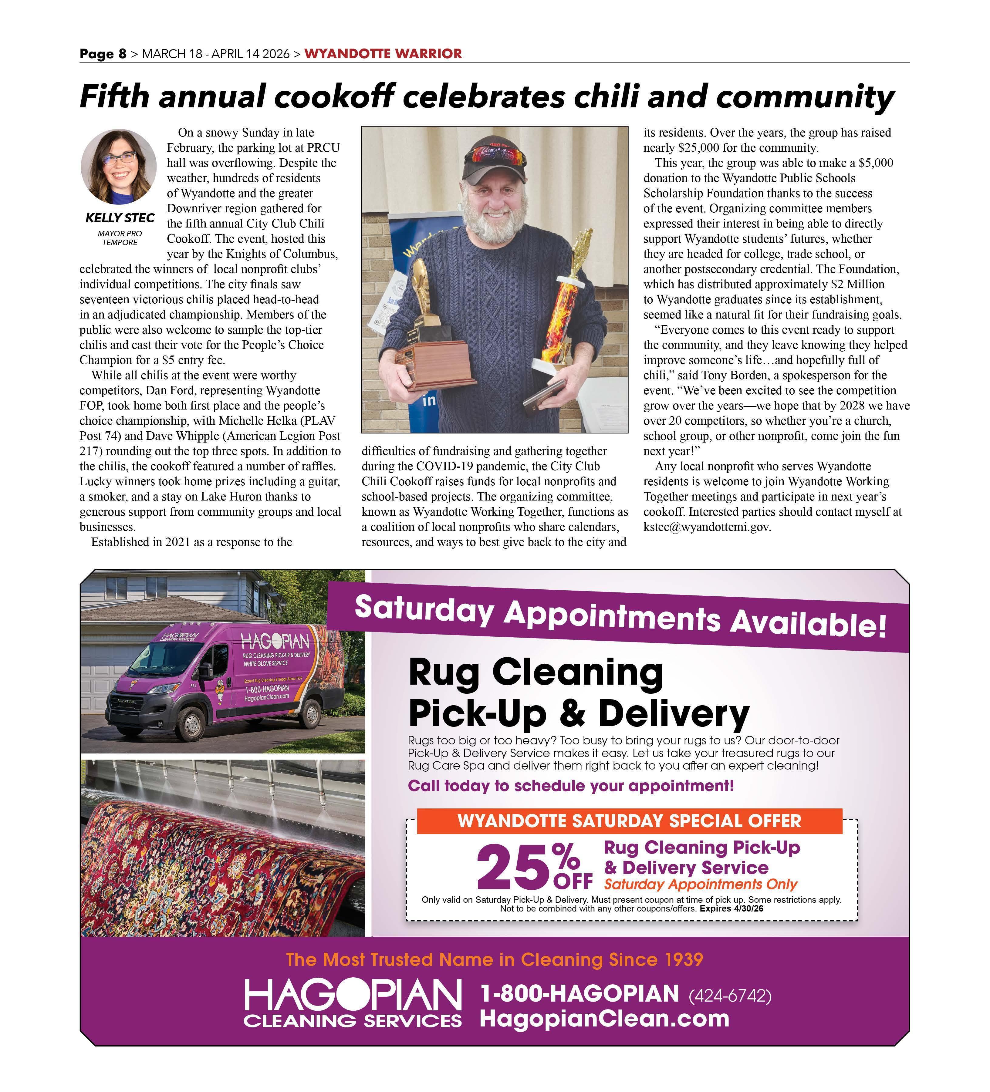 On a snowy Sunday in late February, the parking lot at PRCU hall was overflowing. Despite the weather, hundreds of residents of Wyandotte and the greater Downriver region gathered for KELLYSTEC the fifth annual City Club Chili
