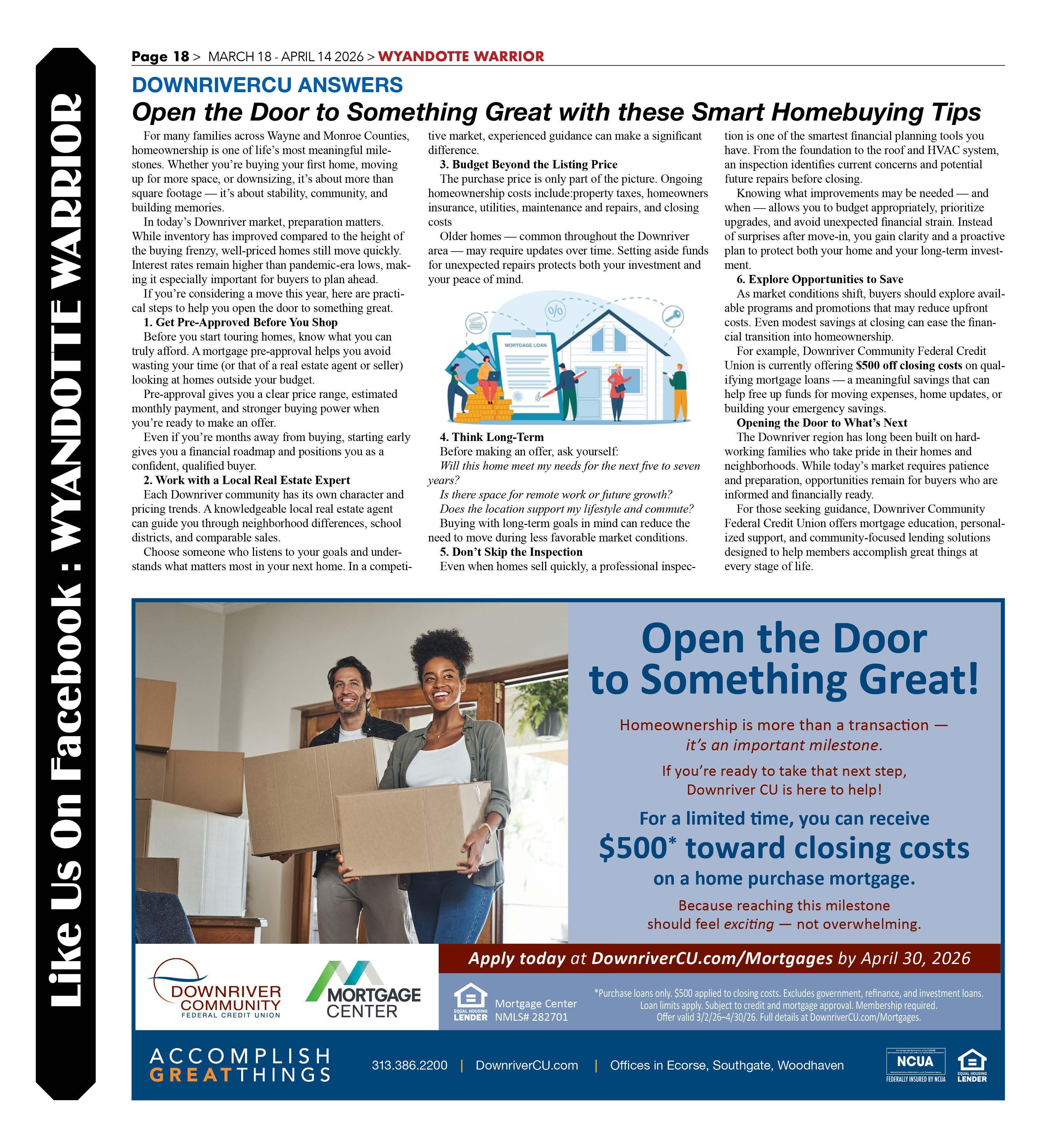 For example, Downriver Community Federal Credit Union is currently offering $500 off closing costs on qualifying mortgage loans - a meaningful savings that can help free up funds for moving expenses, home updates, or building your emergency savings.