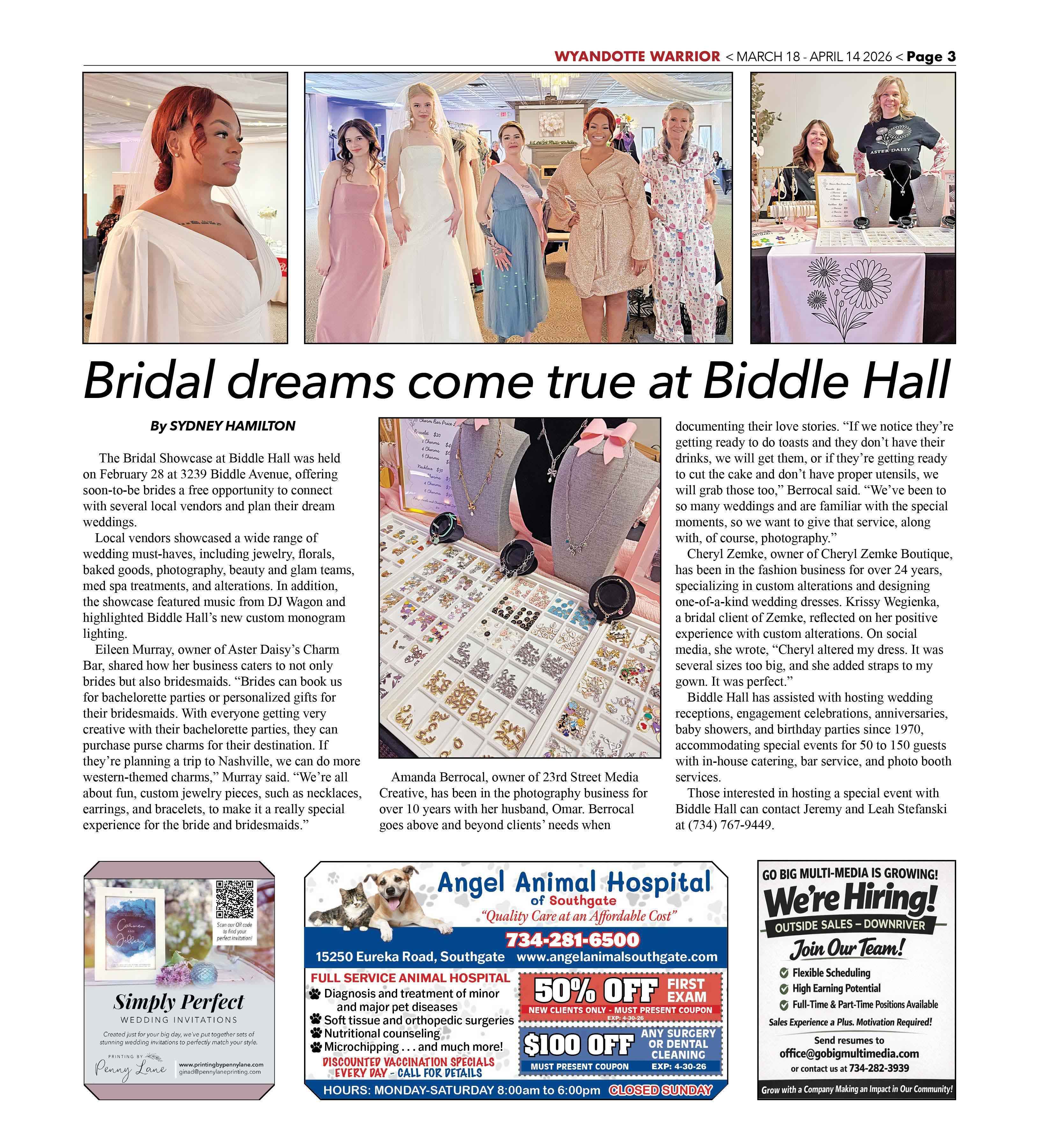 The Bridal Showcase at Biddle Hall was held on February 28 at 3239 Biddle Avenue, offering soon-to-be brides a free opportunity to connect with several local vendors and plan their dream weddings.