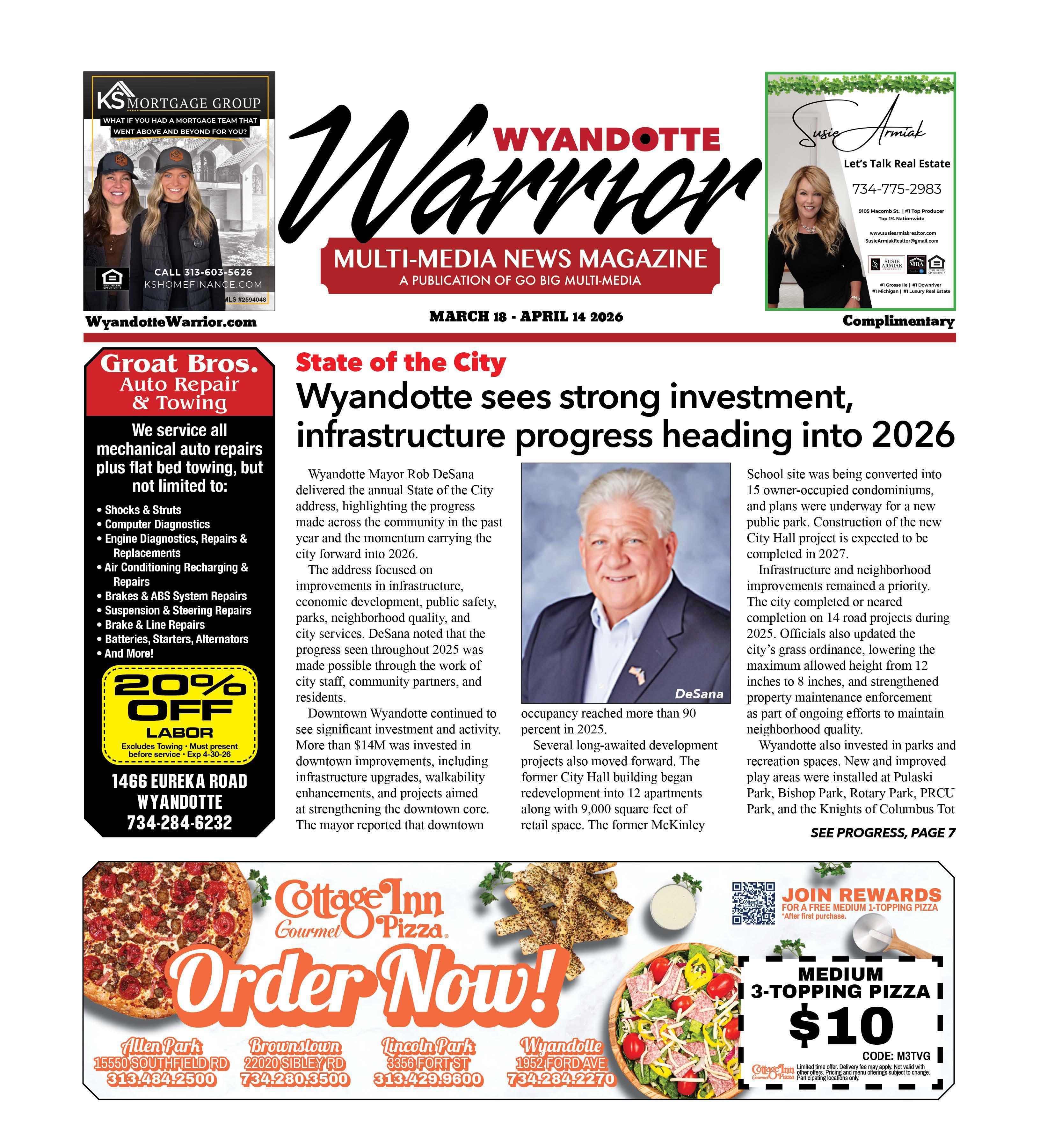 Wyandotte Mayor Rob DeSana delivered the annual State of the City address, highlighting the progress made across the community in the past year and the momentum carrying the city forward into 2026.