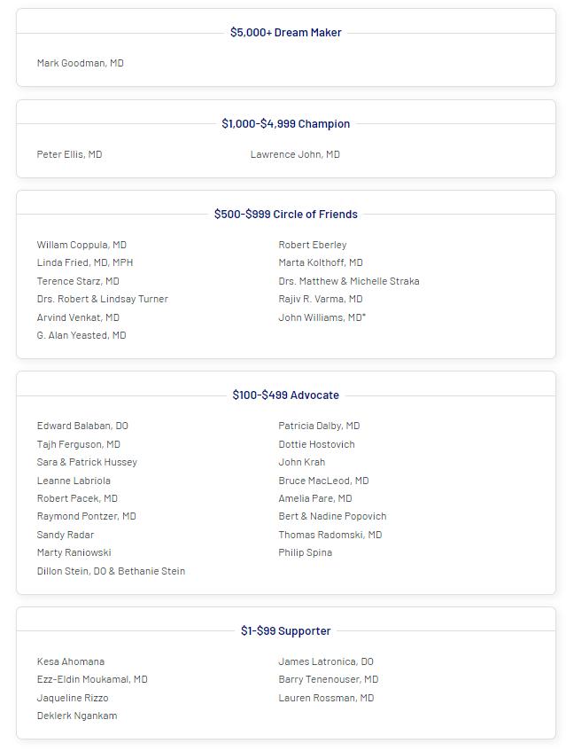 Keith T. Kanel, MD (Chair), Peter G. Ellis, MD & Raymond E. Pontzer, MDAt their October Board Meeting, the ACMS Foundation Board of Trustees will award $200,000+ in grant dollars to local non-profits. As we prepare to distribute these funds to the community, we want to acknowledge the physician members and community members who have provided support to the ACMS Foundation in 2023.