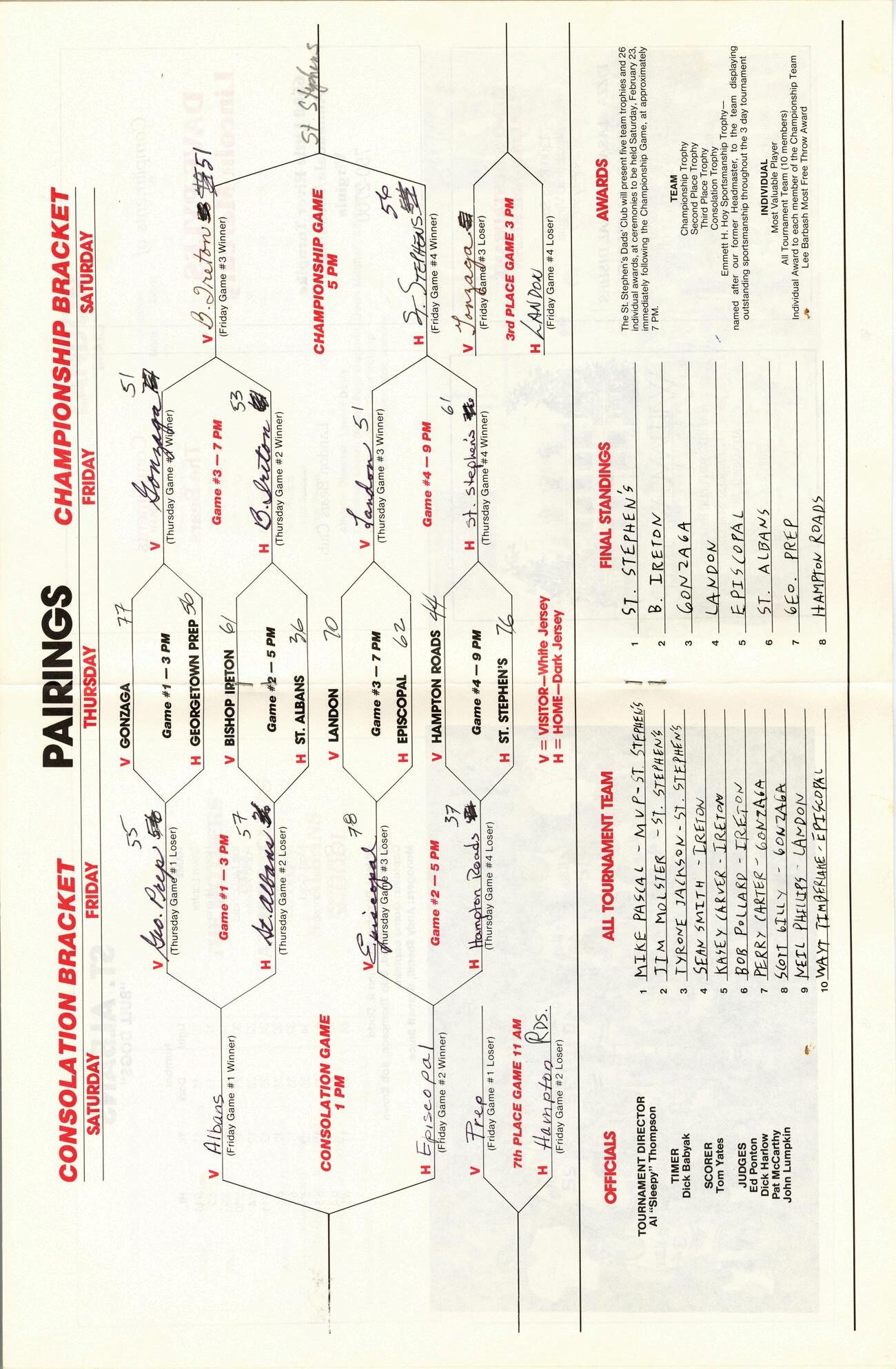 1989 St. Stephen’s, 63 • Gonzaga, 62, OT