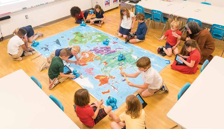 Lower School technology is a carefully sequenced program that blends stand-alone instruction with meaningful integration across language arts, math, science, and social studies. Beginning in junior kindergarten, students build foundational skills in coding, robotics, and digital tools through hands-on, age-appropriate exploration. Each year builds deliberately on the last, as students revisit core concepts—such as sequencing, loops, conditionals, and problem-solving—through increasingly complex applications that emphasize creativity, design thinking, and real-world connections.