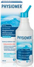 Physiomer-nenähuuhtelu valuvan tai tukkoisen nenän hoitoon. Baby Mist erityisesti pienille vauvoille, Normal Jet aikuisille ja yli 2-vuotiaille.