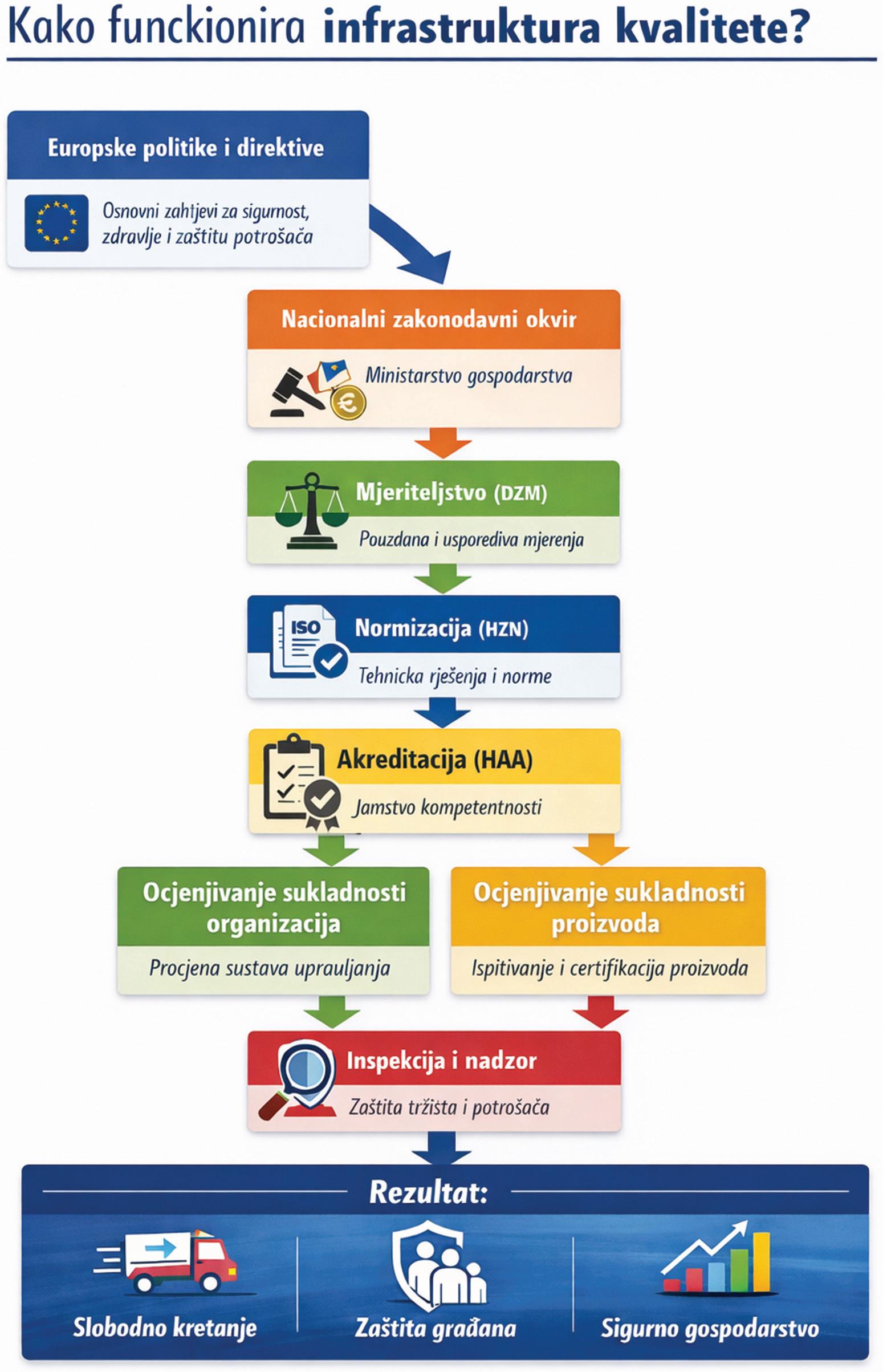 infrastrukture kvalitete. U praksi to znači stvaranje okvira u kojem hrvatski proizvođači mogu ravnopravno sudjelovati na jedinstvenom tržištu, a potrošači uživati jednaku razinu zaštite kao i građani drugih država članica.