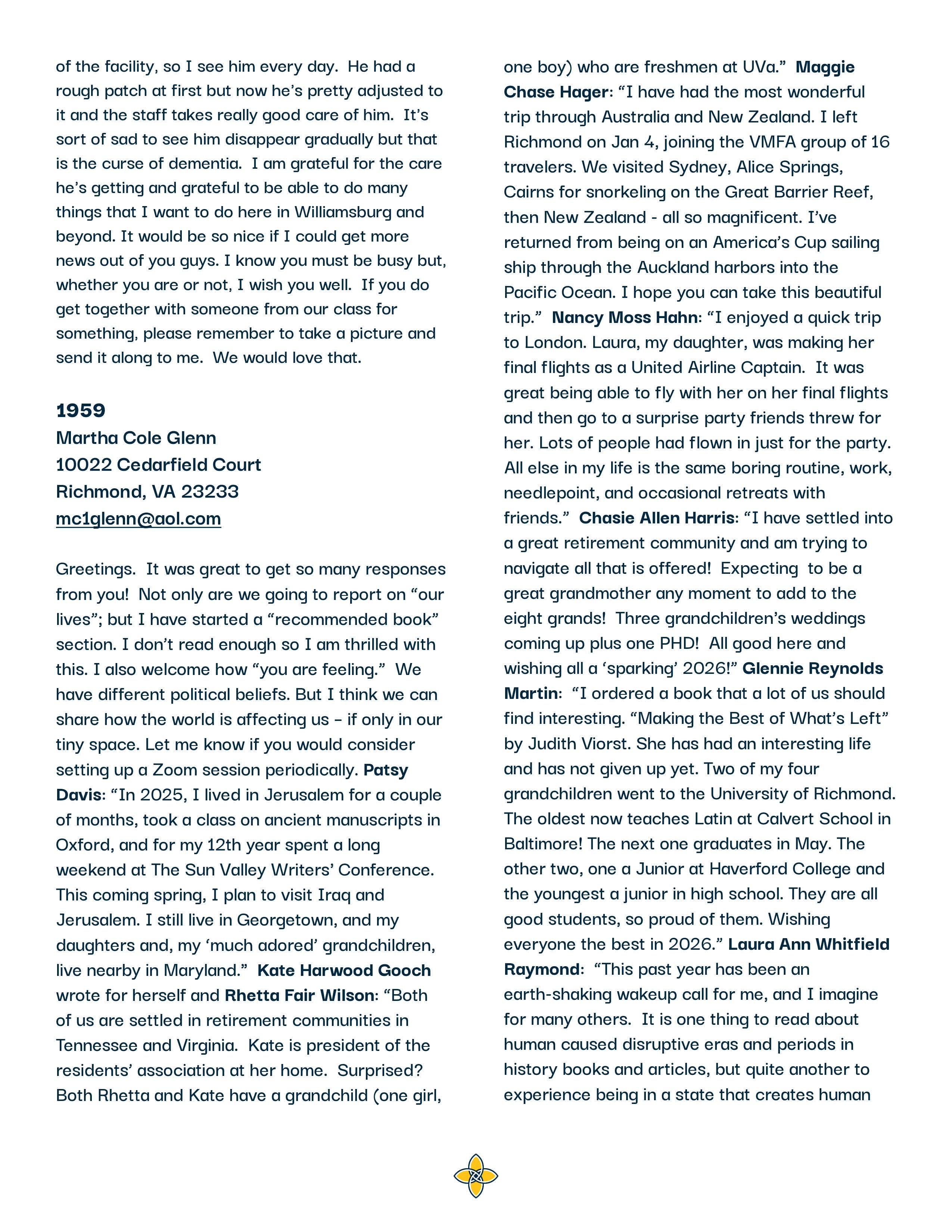 Class Notes - AlumnaeLink April 2026