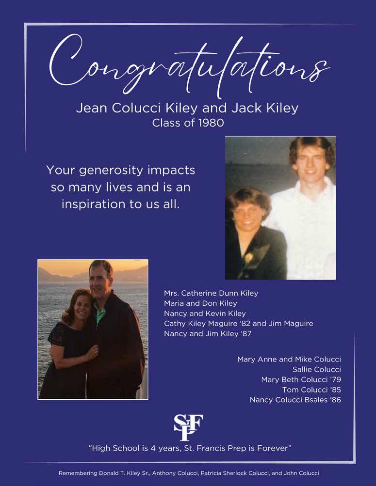 Congratulations to the extraordinary Jean and Jack Kiley Class of 1980