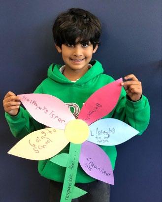 The Grade 1 students have been learning that people around the world all have relationships, responsibilities and rules. After brainstorming and discussing the importance of having rules, relationships and responsibilities, the students began to practice taking on more responsibility (i.e. cubby cleaning, bringing their agenda in daily). Students created a Responsibility Flower. Every petal on the flower includes one of their promises on how they will be responsible at home and at school.