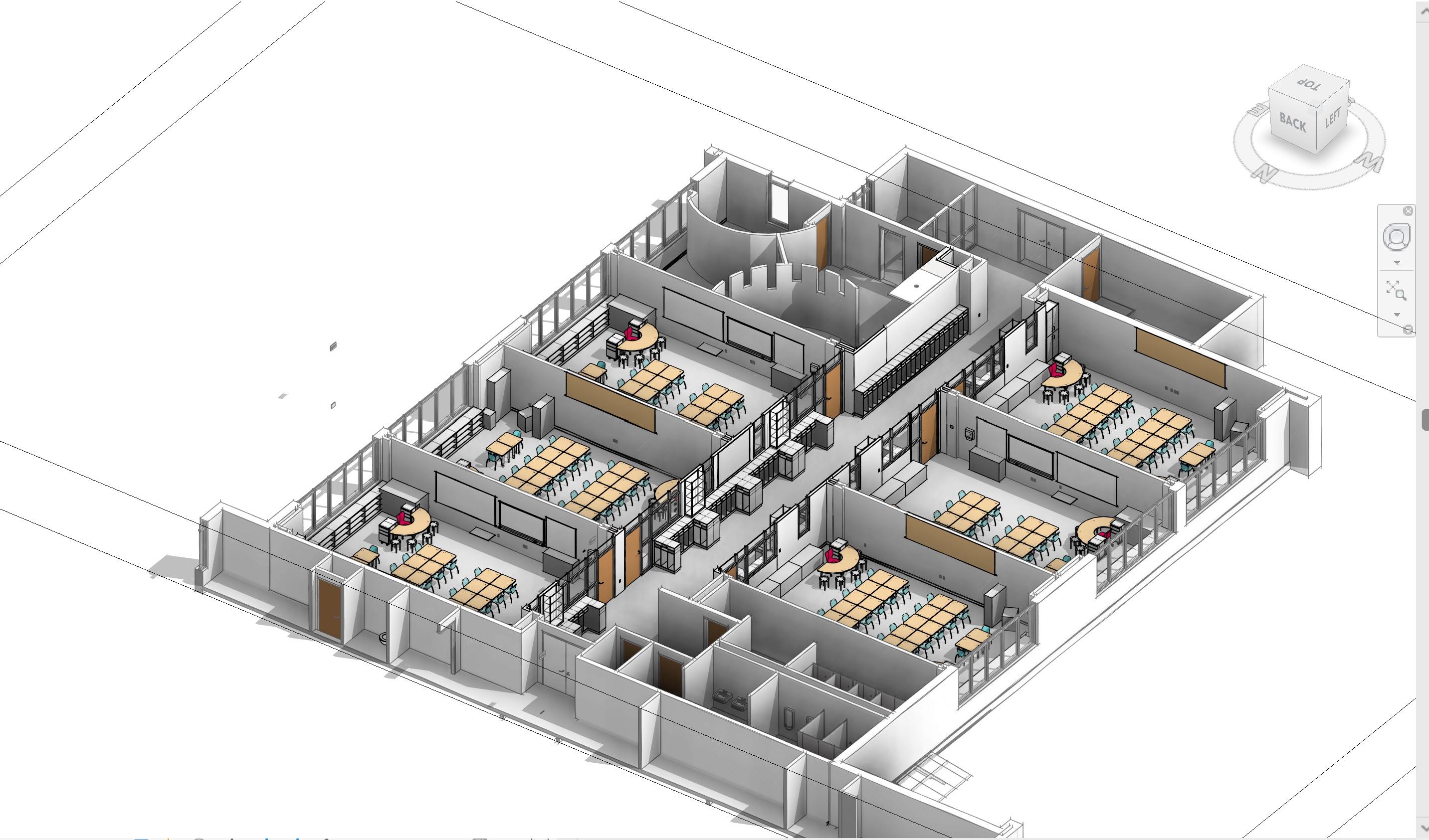 MAIN ENTRY LEVEL – WARRIOR HALL – CLASSROOM AXONOMETRIC
