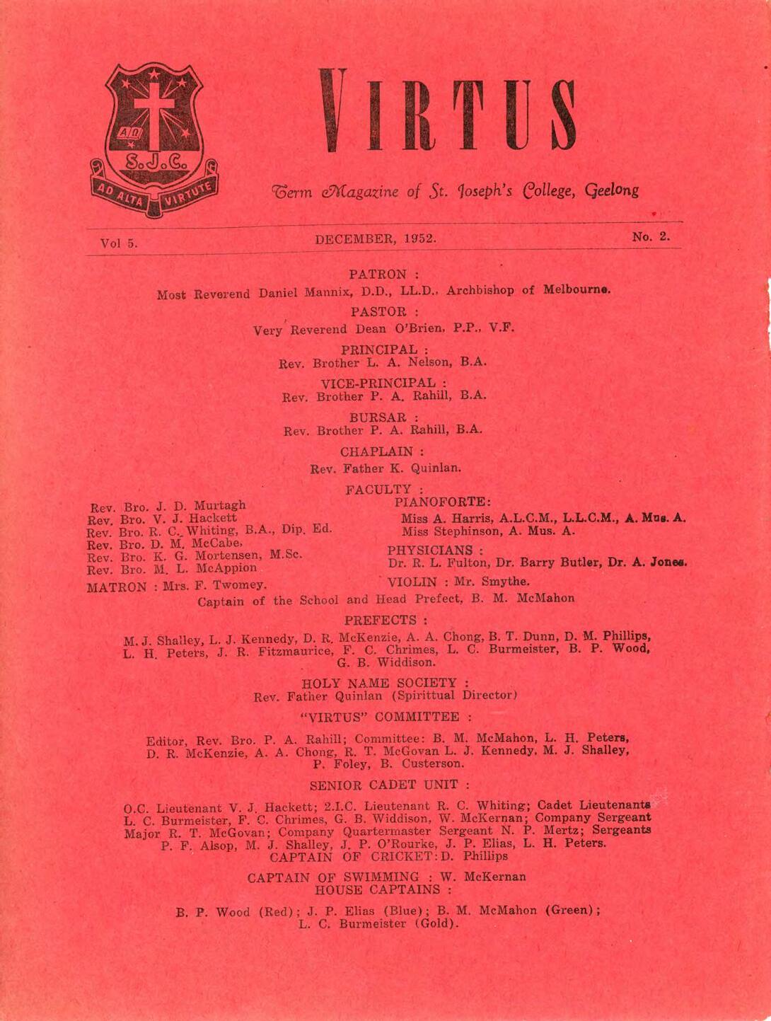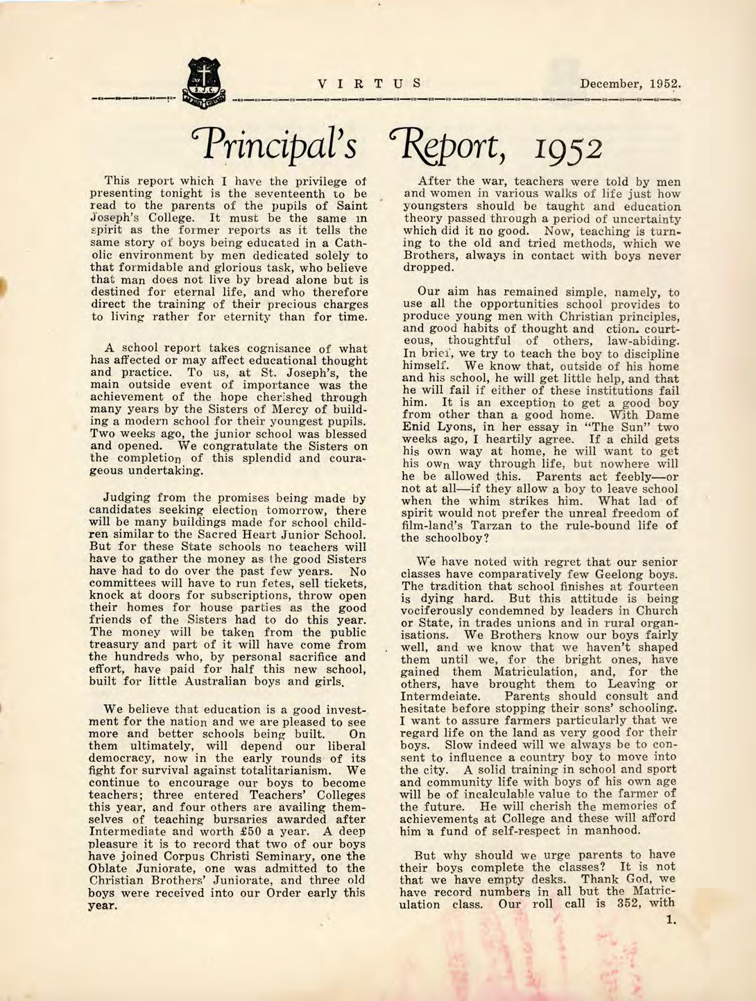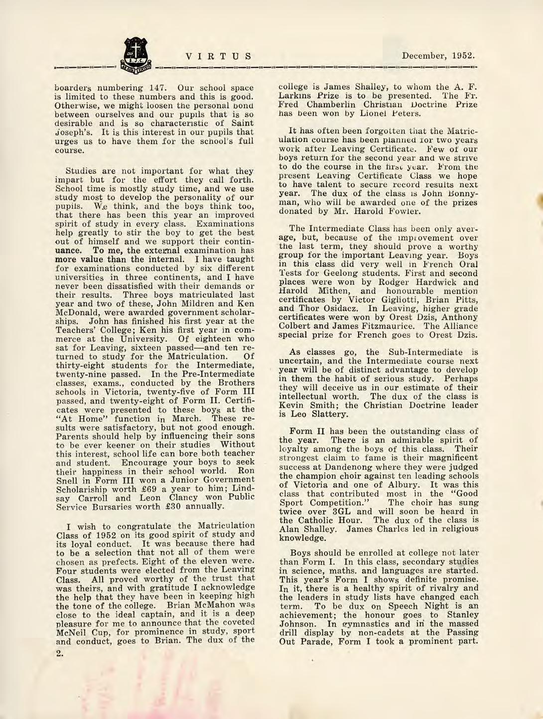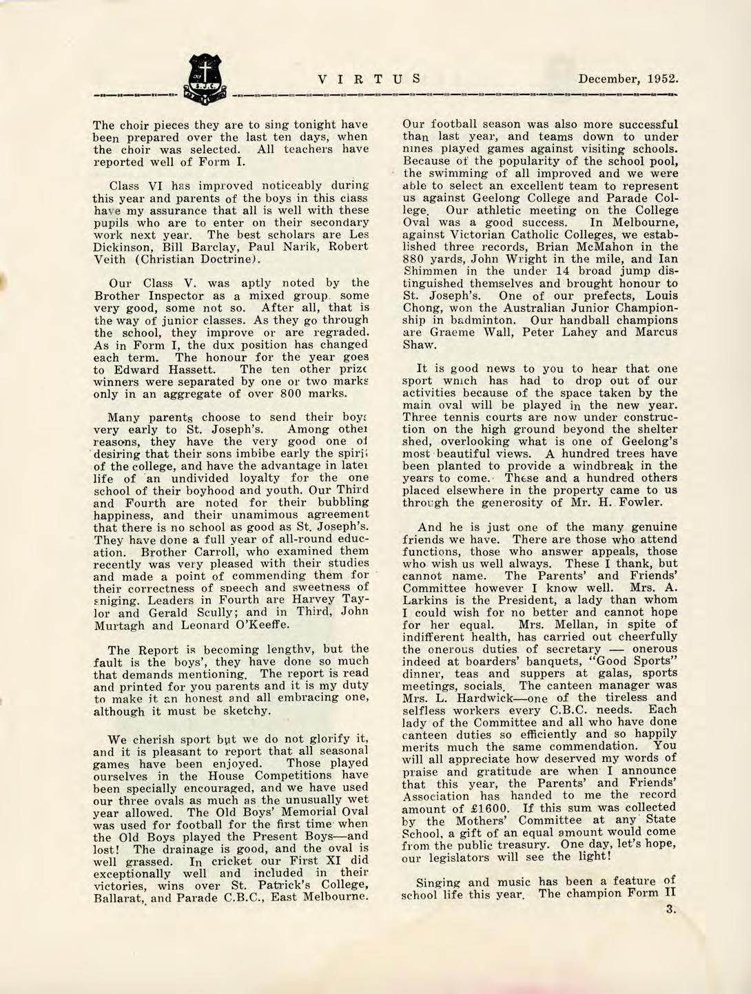 1952 Virtus December by St Joseph's College Geelong - Issuu