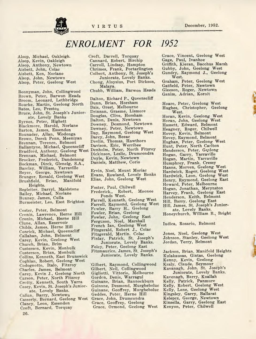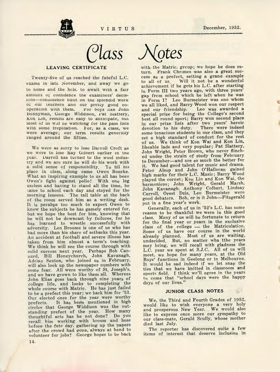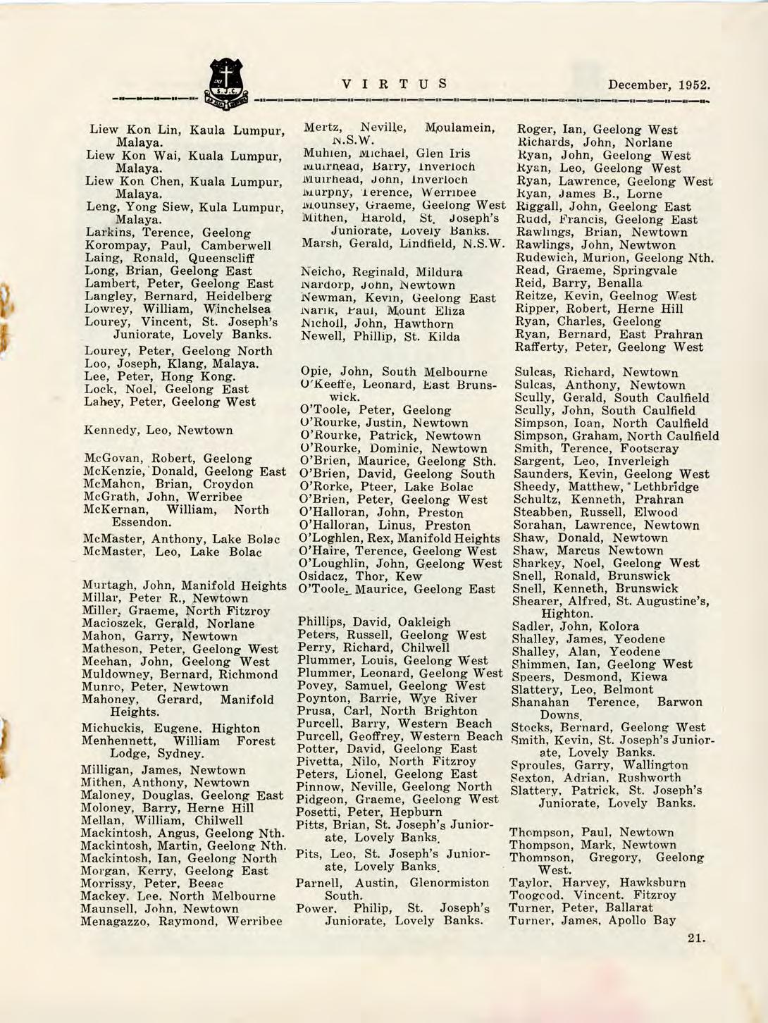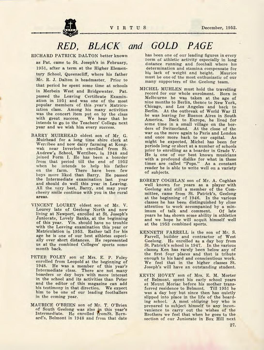 1952 Virtus December by St Joseph's College Geelong - Issuu