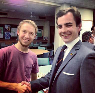 Junior Vice President Tom Bennett congratulates Nick Cooper on joining the SJOCA Committee