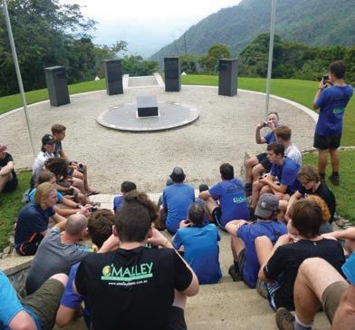 1 airfield and hospital site, which was a vast expanse of flat land situated in the middle of a mountain range. We also visited the site of an American plane crash, where parts of the plane still remain. From there we trekked to the village of Kagi, where we would spend our rest day. The rest day in Kagi was a highlight of the trip. The group split into three to experience the life of an everyday villager. The activities included gardening, hunting and wood chopping. After a unique experience, there was a small break for lunch before the inaugural Australia vs PNG games. These included Touch Rugby, Tug of War, Volleyball, Soccer and climb the greasy pole. The students went down 2-3 to PNG, unable to win in the greasy pole challenge. The day was rounded off by attending the local church before heading off to bed.