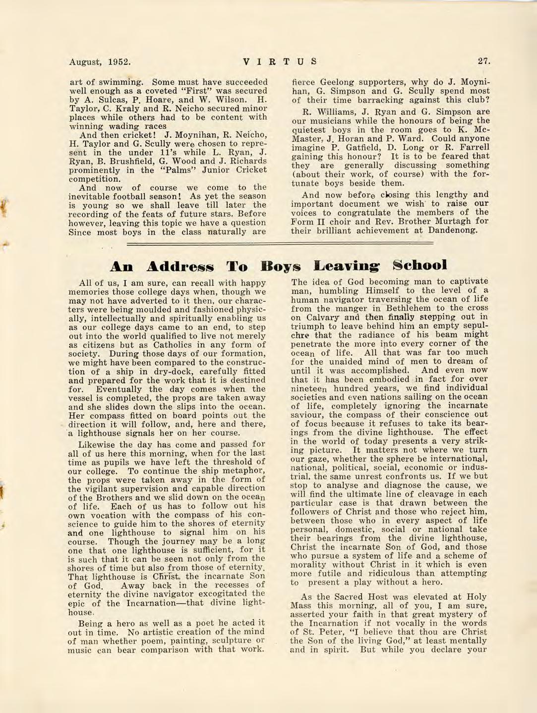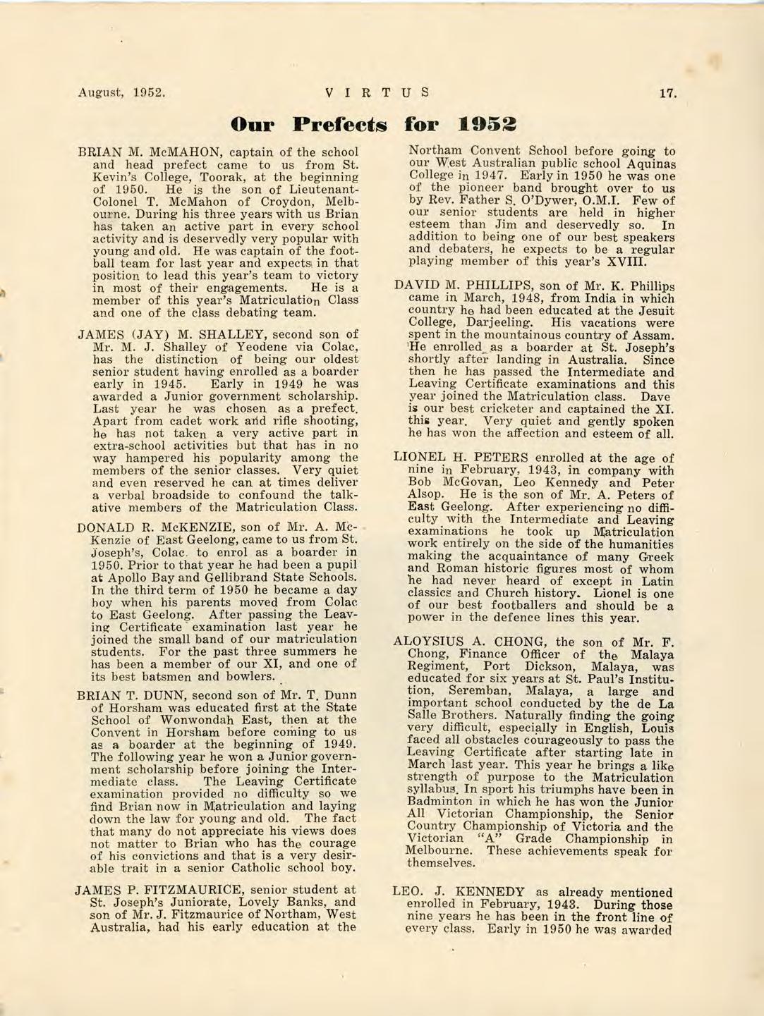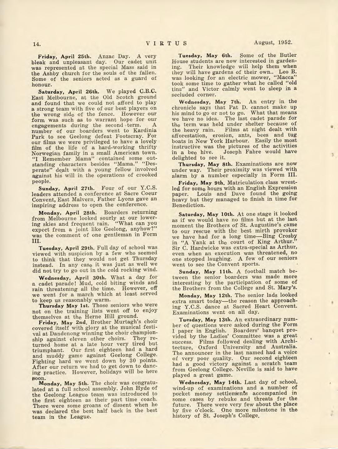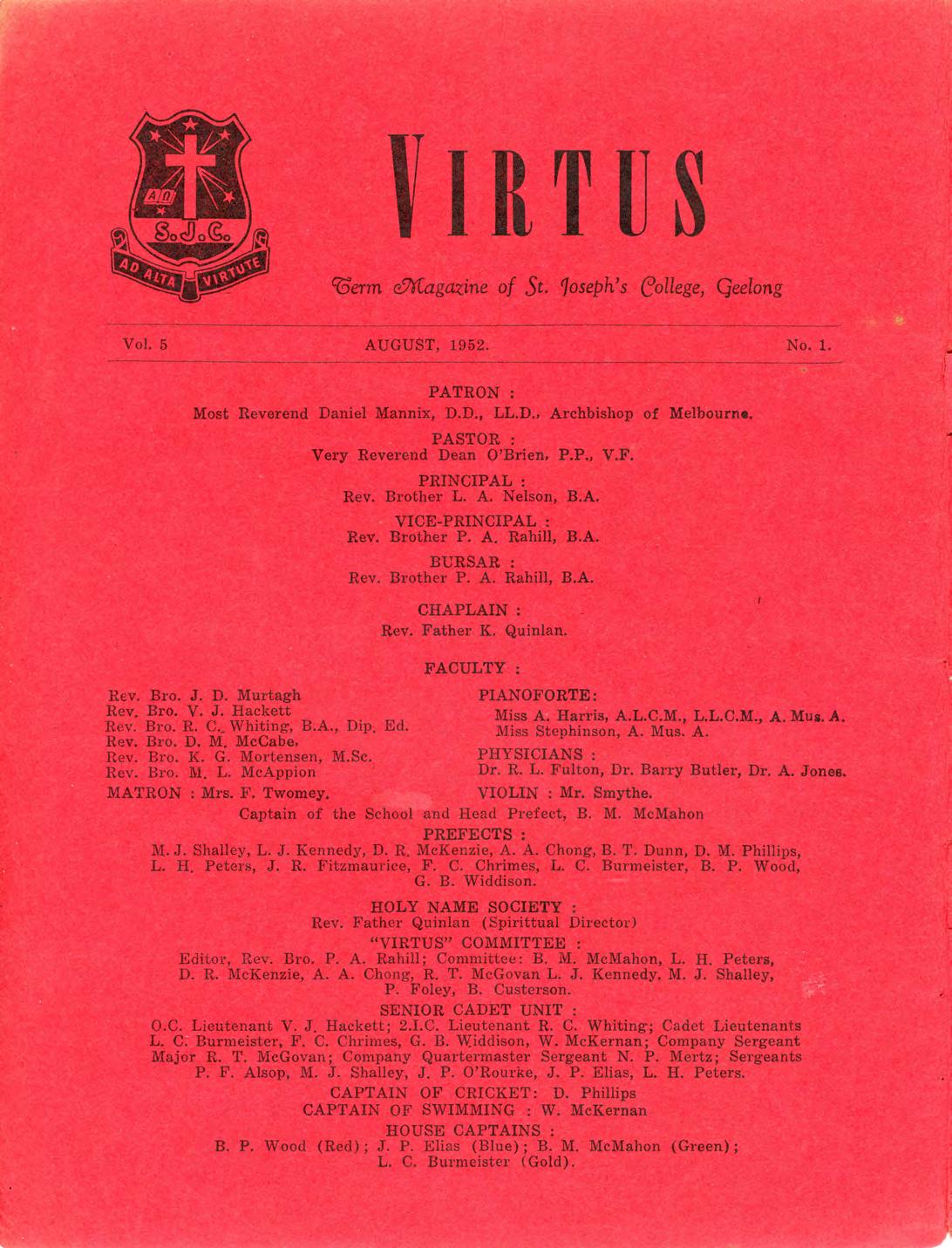 Virtus August 1952 by St Joseph's College Geelong - Issuu