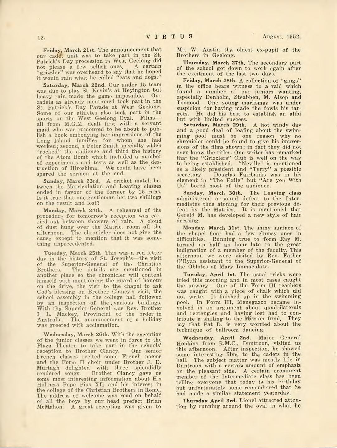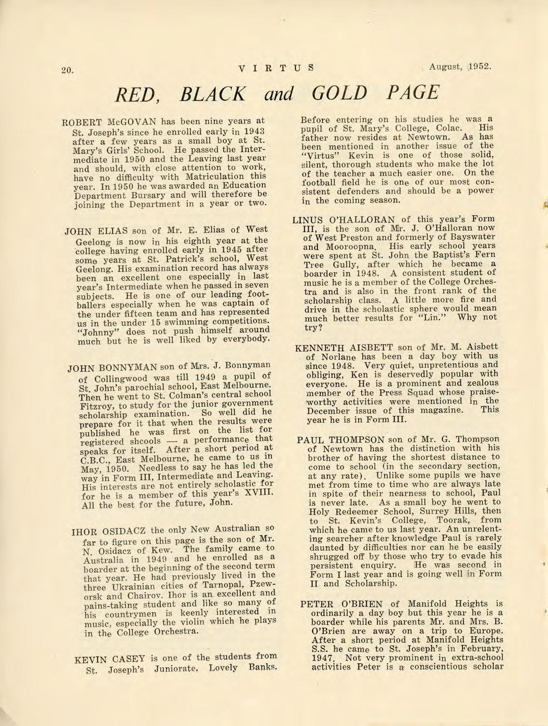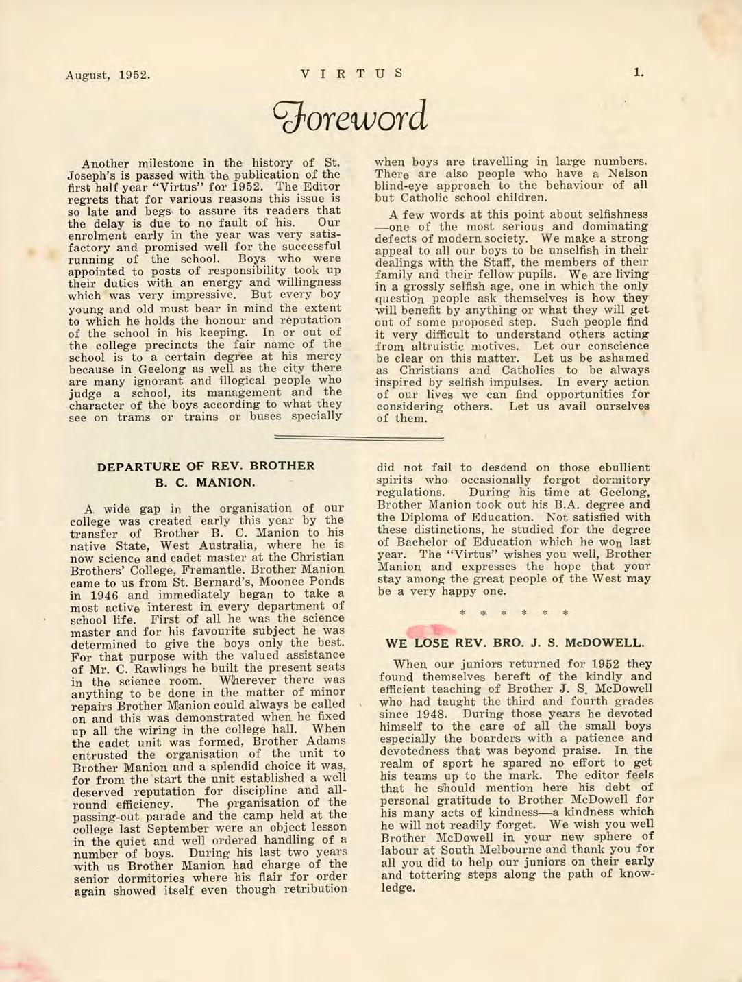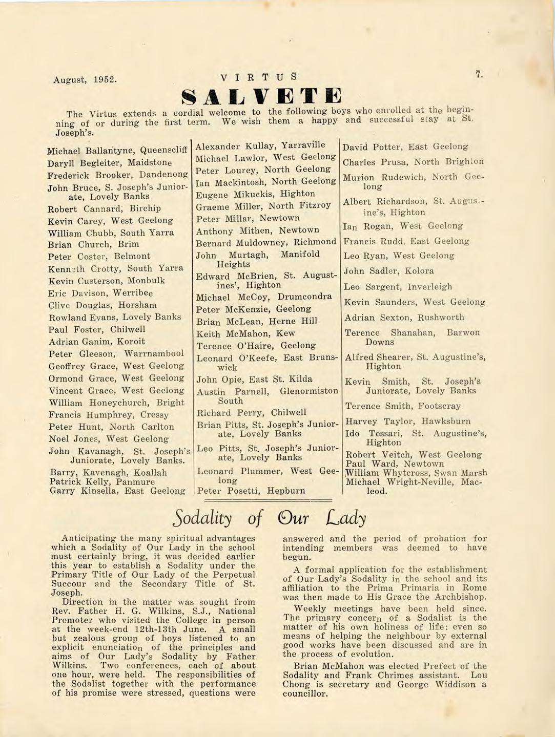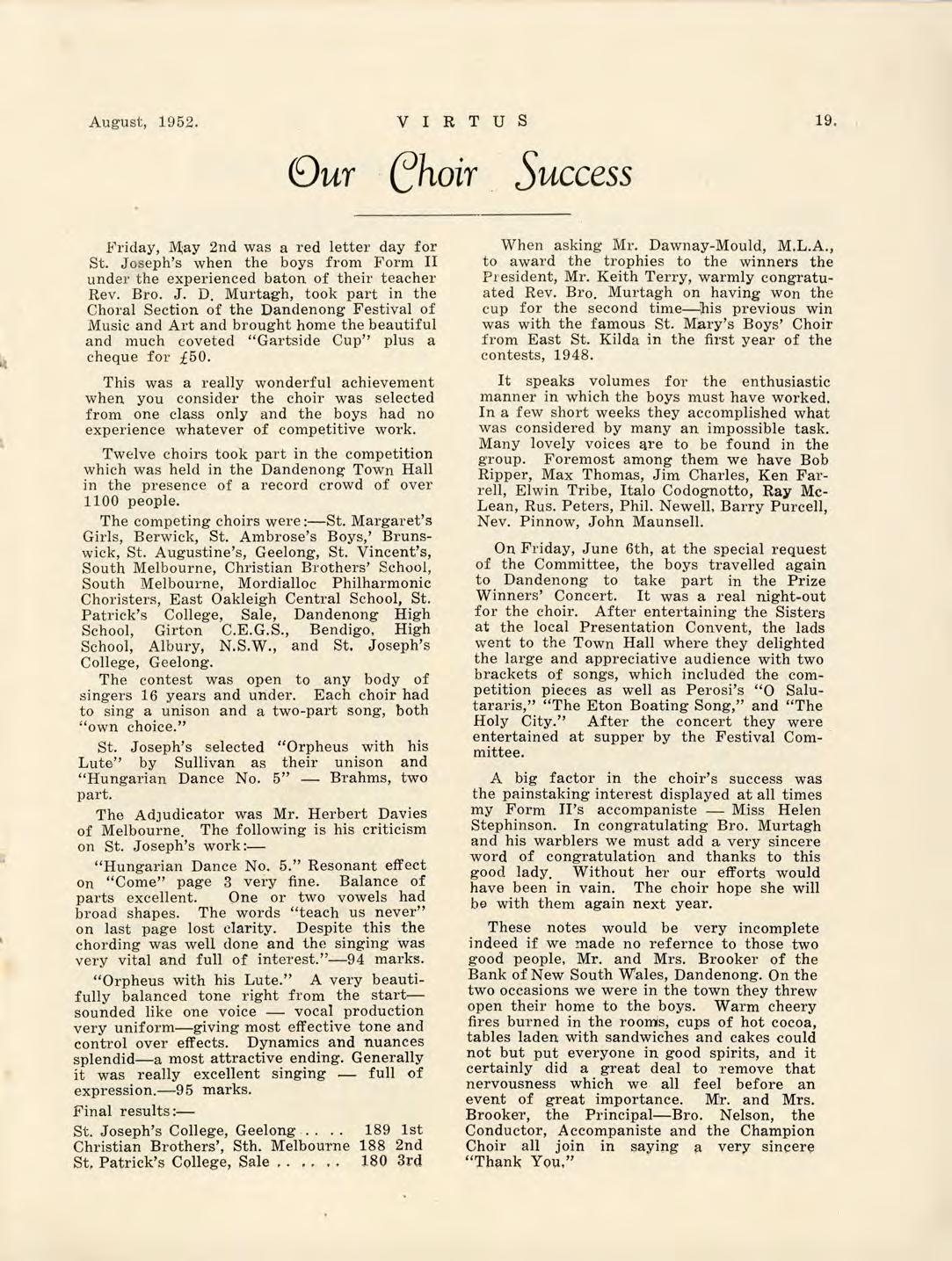 Virtus August 1952 by St Joseph's College Geelong - Issuu