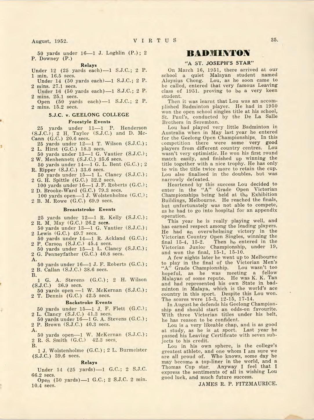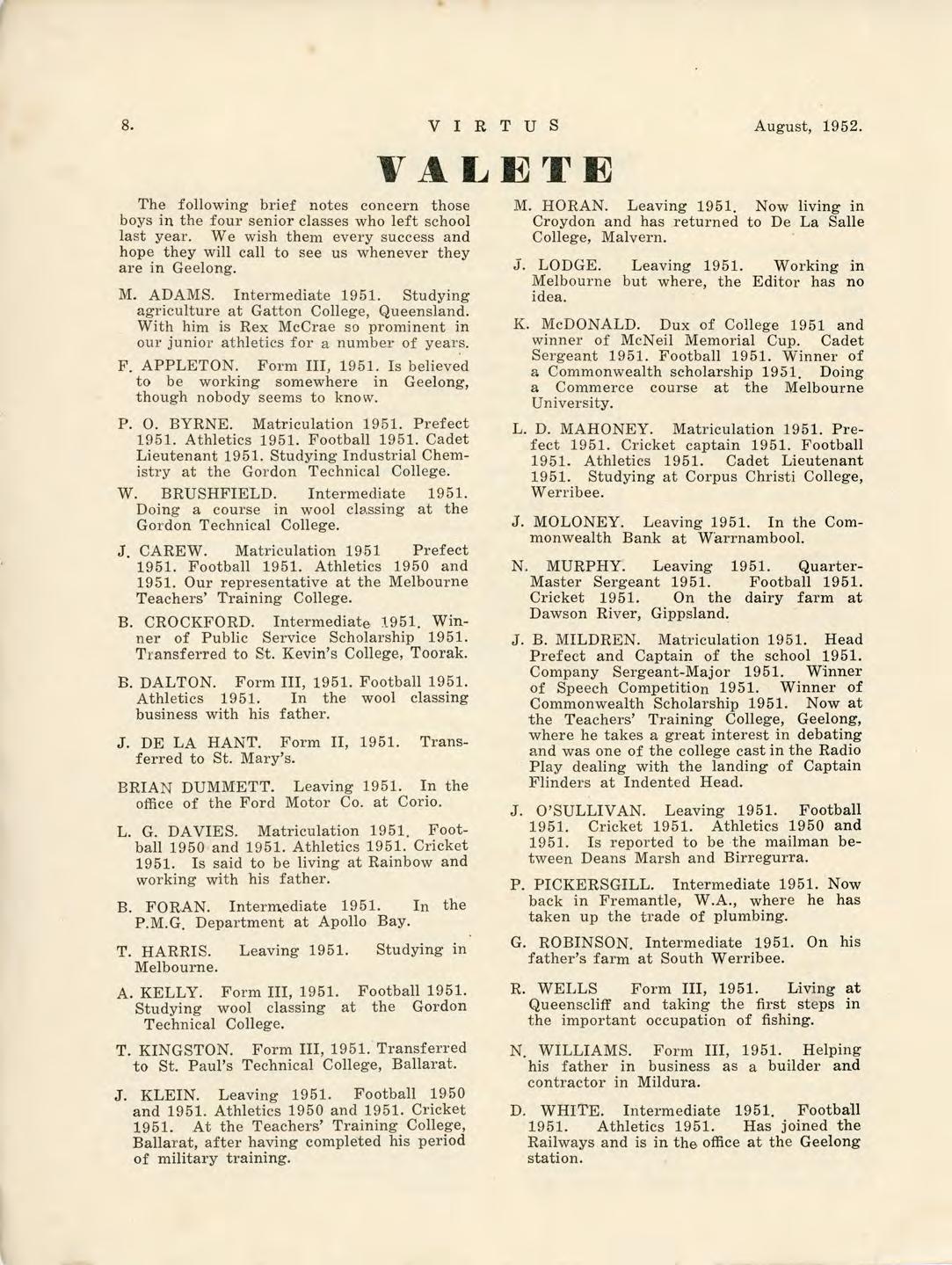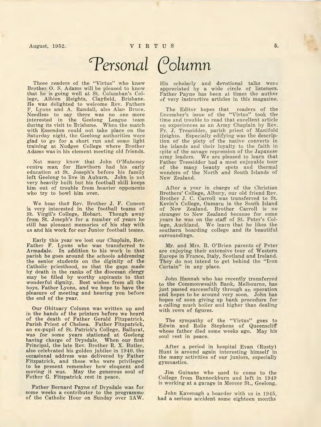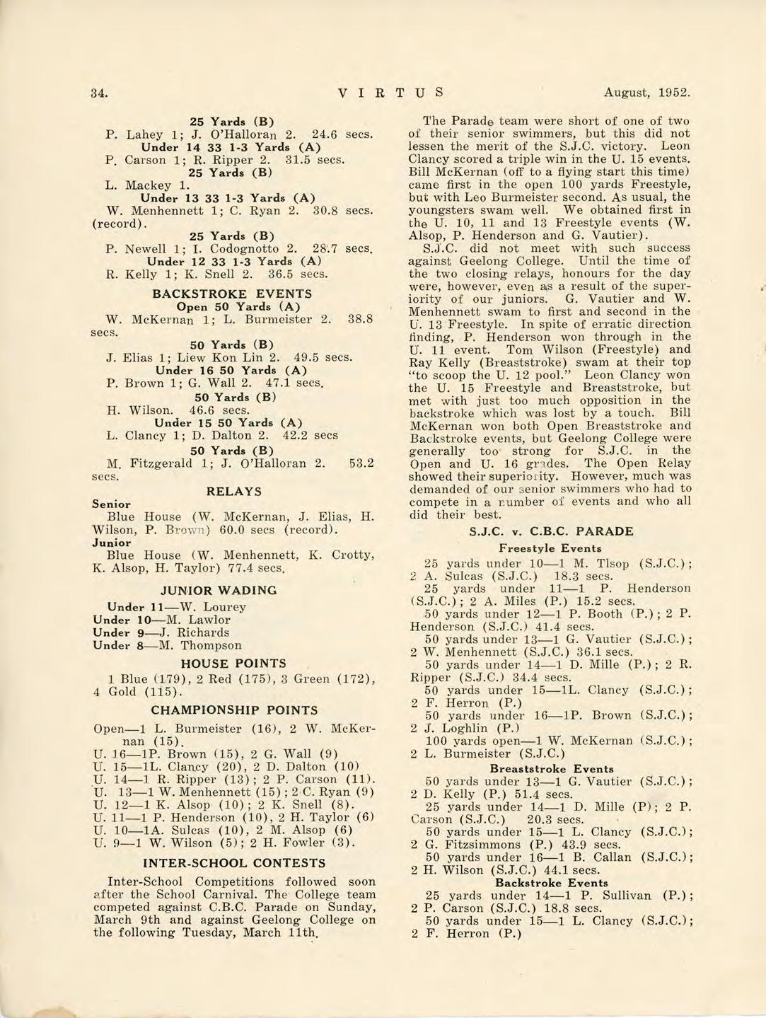 Virtus August 1952 by St Joseph's College Geelong - Issuu