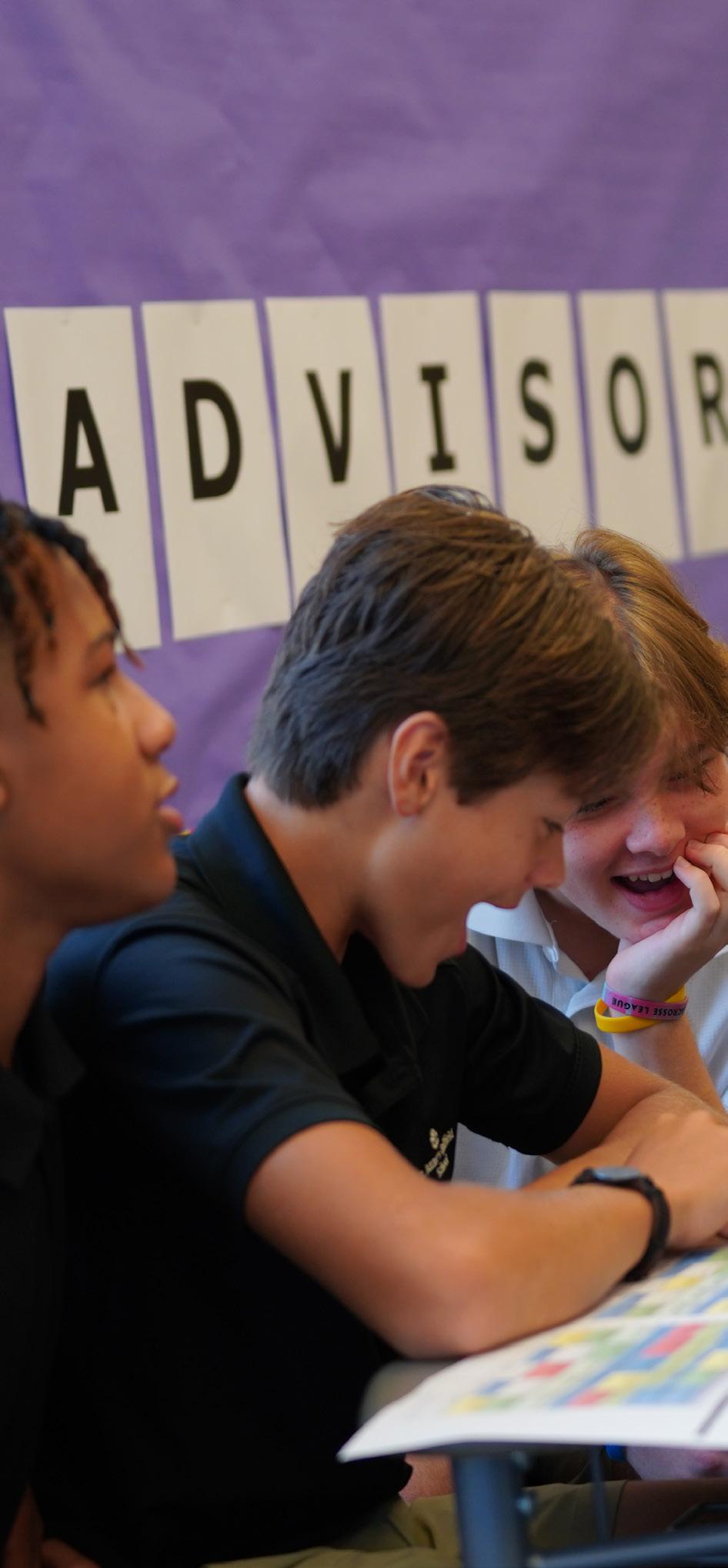 Every student in the Middle School is assigned to an advisory group led by a teacher who serves as that student’s adult advocate and also a liaison between the School and parents/guardians. Our advisory program anchors student learning in a strong relationship with an adult. It prioritizes time and space for the development of key life skills and habits. Everything from typing, organization, and time management — to digital citizenship and reflection and goal-setting. The smaller teacher-tostudent ratios provide a setting where students can feel free to voice their questions and curiosities. All topics are revisited throughout the Middle School years in different and developmentally-appropriate ways. For our Grade 8 students, there is also a special emphasis on community leadership.
