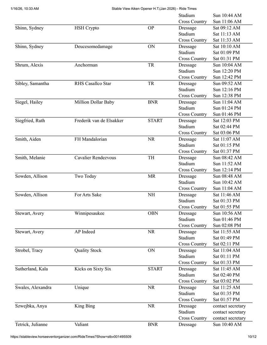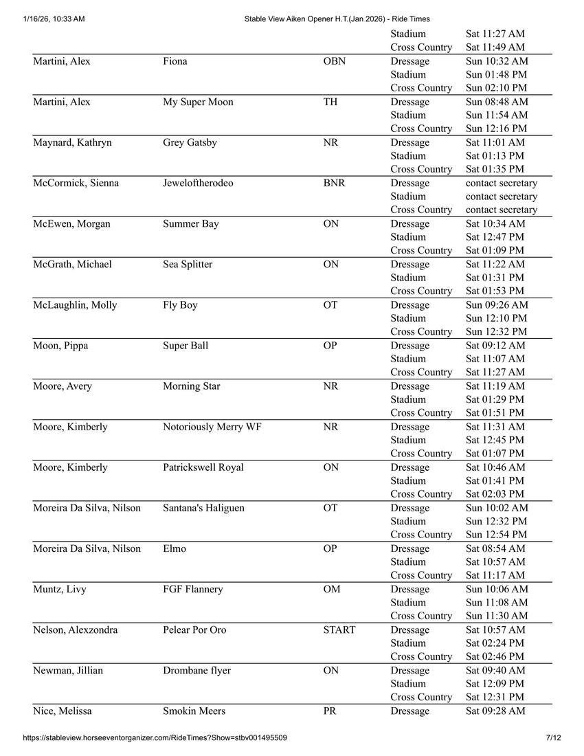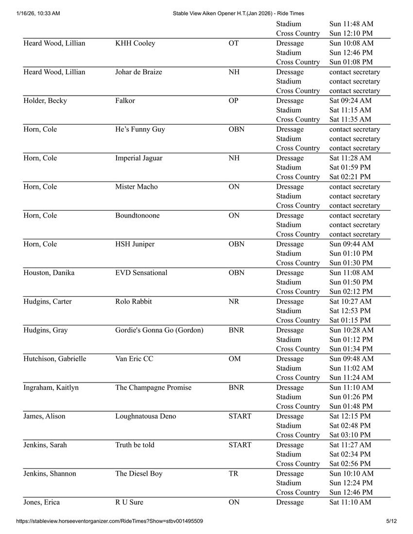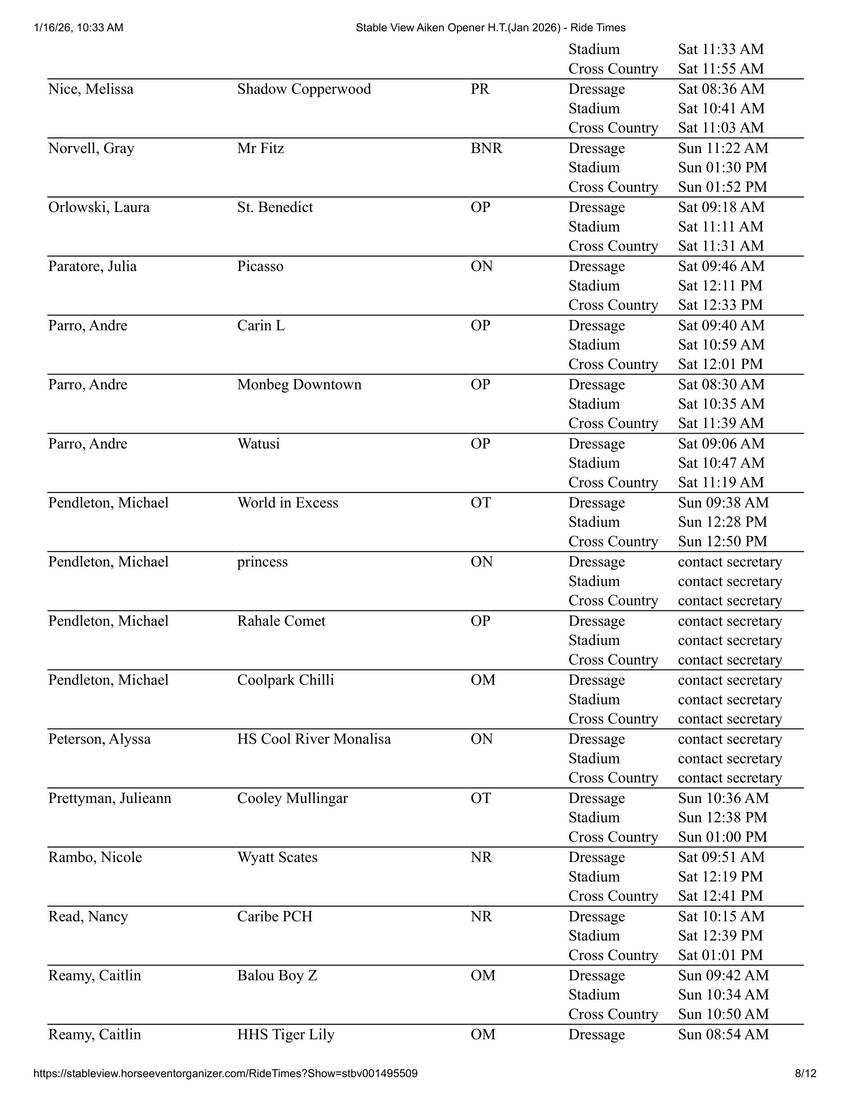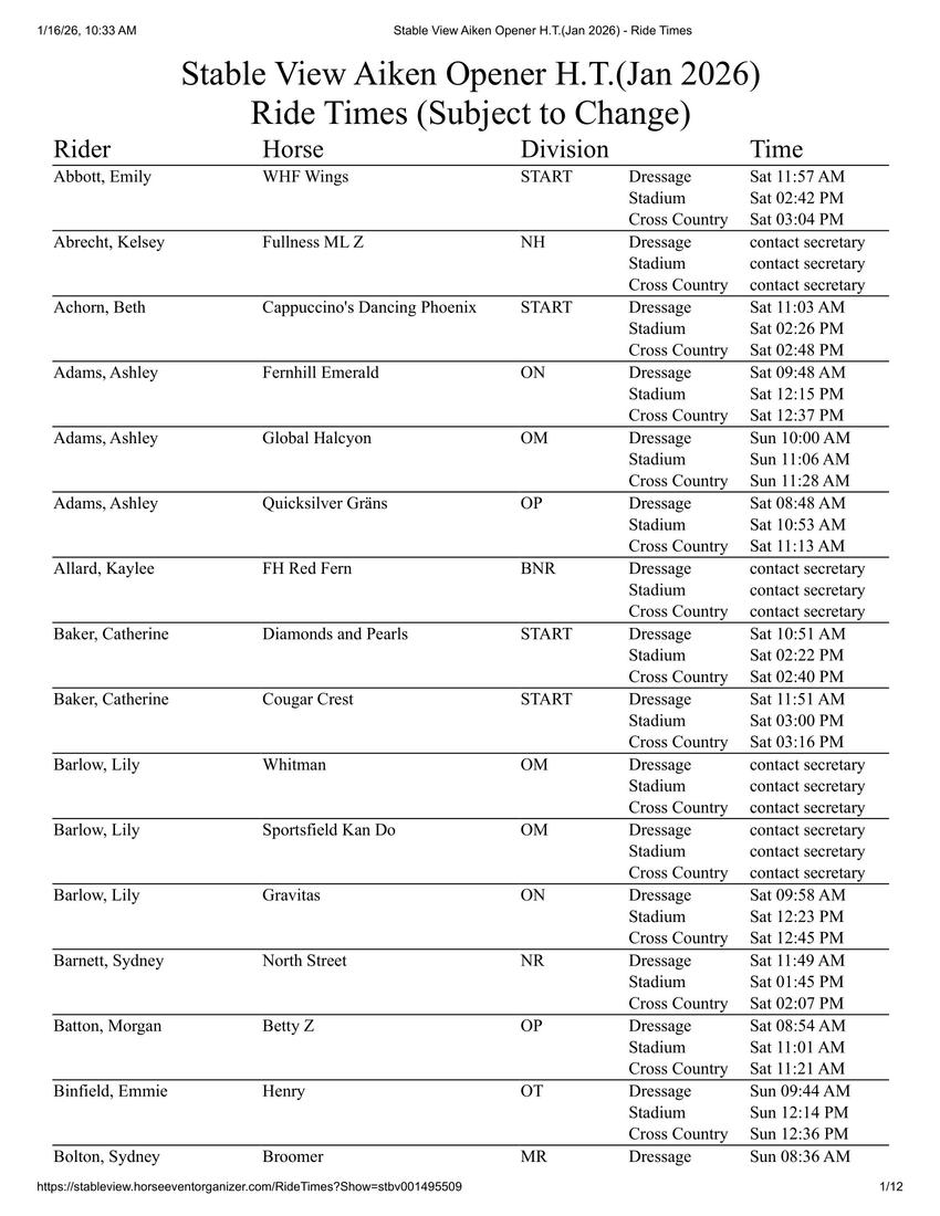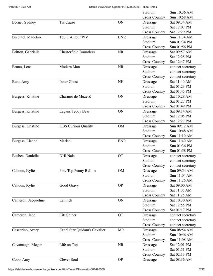 18||SchoolingDressageCollection 18-22||AikenCarriageClassicPleasureShow 25||SouthernBelleClassicClinic 27-29||SouthernBelleClassicAuction