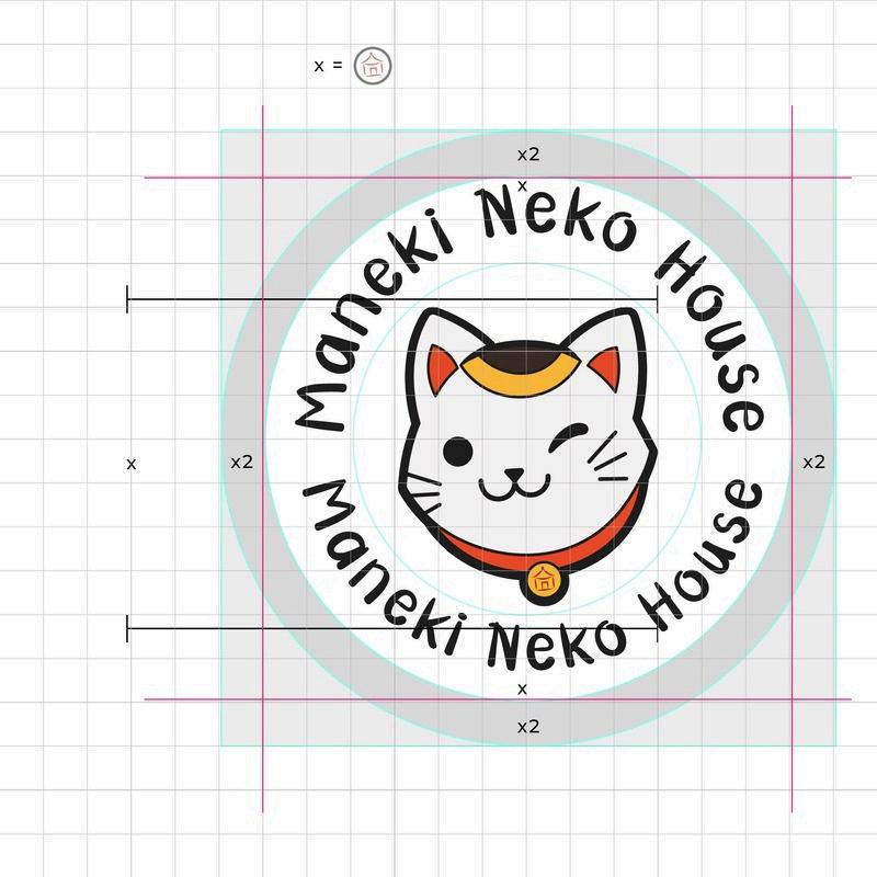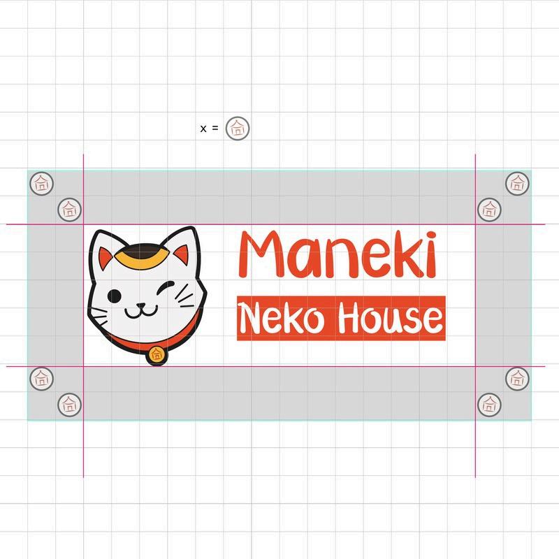 El área de seguridad delimita donde no pueden estar otros elementos ya que impediría la correcta visualización del logotipo, ya sea en su aplicación en circular o en horizontal. En el caso de Maneki Neko House el área de seguridad viene dada por la altura del icono de una casa hacia cualquiera de los lados del logotipo