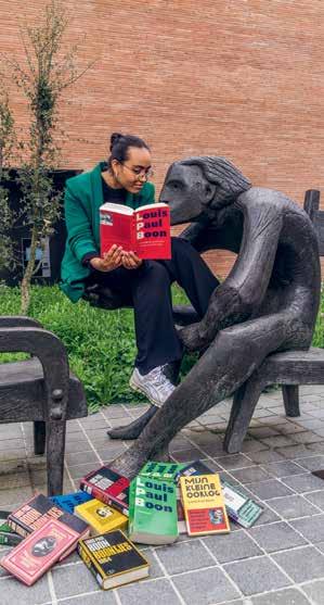 Bienvenue à Utopia, le salon de l'Alostois. Le bâtiment abrite à la fois la bibliothèque principale et l'Académie des arts de la scène. Ce lieu a un riche passé : le bâtiment a autrefois servi de monastère, de caserne, de prison militaire, de camp d'internement et de palais de justice. Sur le côté du bâtiment se dresse la statue de l'écrivain Louis Paul Boon.