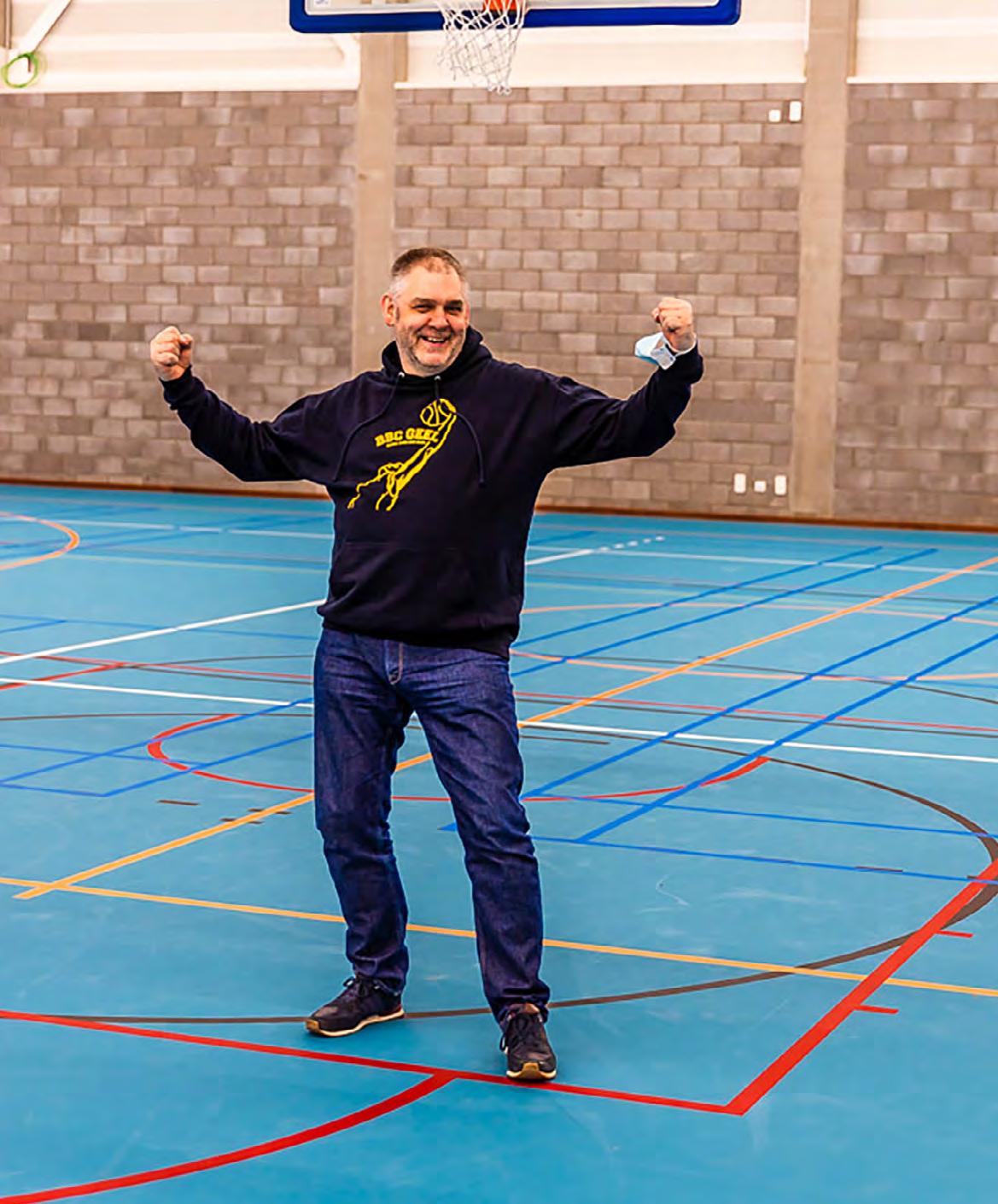 Koen: “De coronacrisis was voor onze vereniging op verschillende vlakken een uitdaging. We moesten ons telkens aanpassen aan veranderende regels en een oplossing vinden om te kunnen blijven sporten. Zo hebben we heel lang niet meer binnen mogen sporten. Gelukkig zijn er binnen onze stad nog wat buitenbasketbalvelden die wij konden gebruiken.