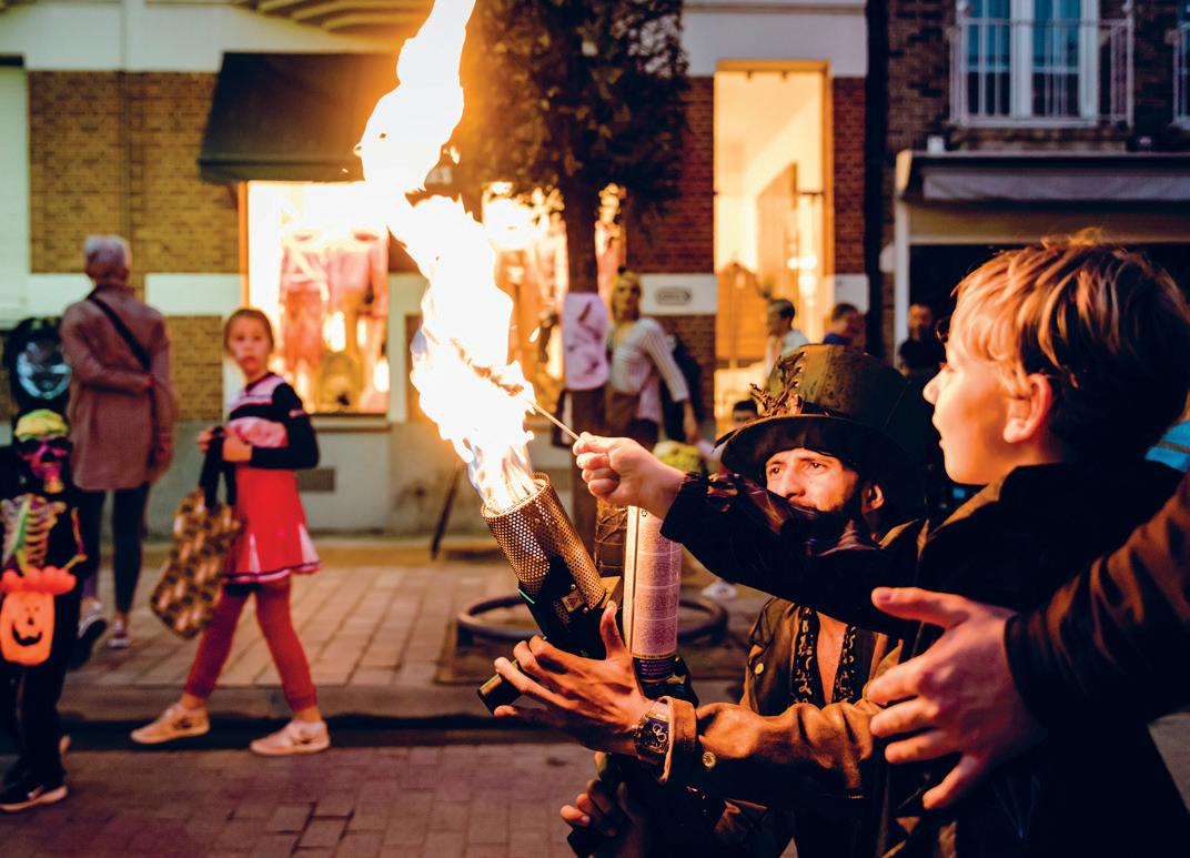 Bereid je voor op een avond vol spanning en spektakel! Terwijl je door de straten wandelt, kom je tientallen verklede figuranten tegen, geniet je van een mysterieuze goochelact en bewonder je spectaculaire vuurshows die de nacht verlichten. Zowel de Nieuwstraat als de Pas zijn deze avond verkeersvrij, zodat je in alle rust kunt genieten van deze unieke, griezelige sfeer en het winkelplezier in het hart van Geel.