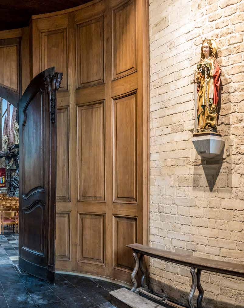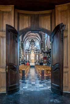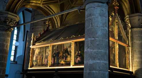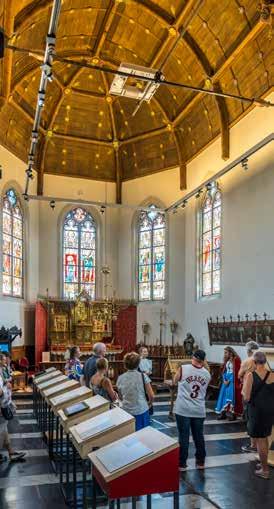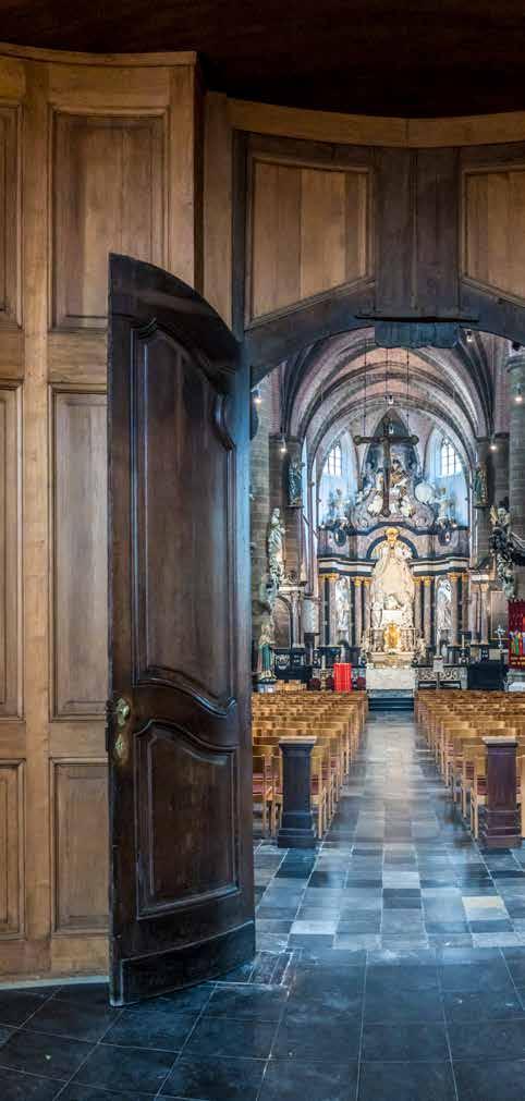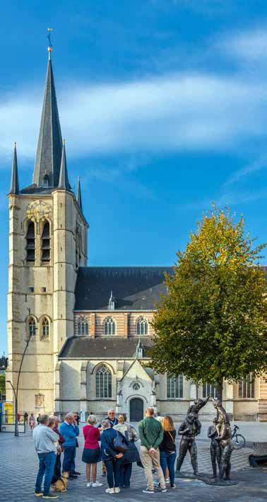 meer een hele zaal over Dimpna en haar verering kan terugvinden. De indrukwekkende Sint-Dimpnakerk herbergt maar liefst vijf Vlaamse topstukken, waaronder het Dimpnaretabel waarin de legende van de heilige Dimpna prachtig uitgebeeld wordt. Of spring op je fiets en ontdek tijdens de Sint-Dimpnaroute een van de vele Dimpnakapellen die Geel rijk is en de prachtige oude infirmerie van het Openbaar Psychiatrisch Zorgcentrum. Kortom, Dimpna en de gezinsverpleging zijn nooit ver weg in de Barmhartige Stede.