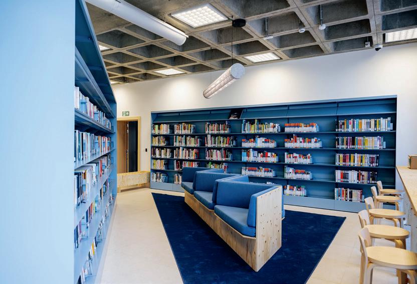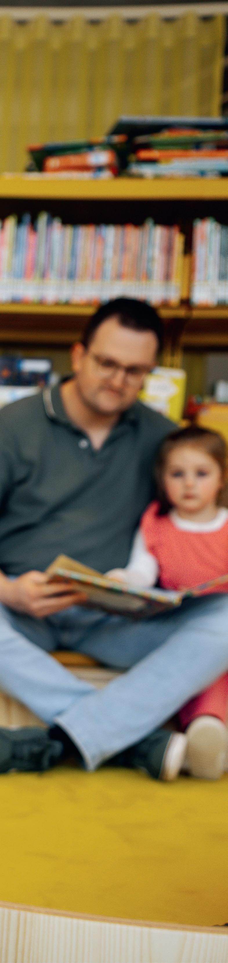 De heropening van de bib was goed nieuws voor dit gezin. “Elke drie weken gaan we samen boeken uitlenen om te lezen voor het slapengaan. Het is zowat routine geworden, dus het is fijn om opnieuw dichter bij huis door de rekken te snuisteren. De bib is nu iets kleiner. Ze ziet er knus en gezellig uit, maar er is wel voldoende aanbod. Ik herken er de oude bib ook nog in, dus dat voelt als thuiskomen.” Een bewuste ontwerpkeuze, weet Liesbet. “Hoewel de bib er fris uitziet, werd het originele karakter van het gebouw behouden in het unieke plafond en de robuuste trap.”