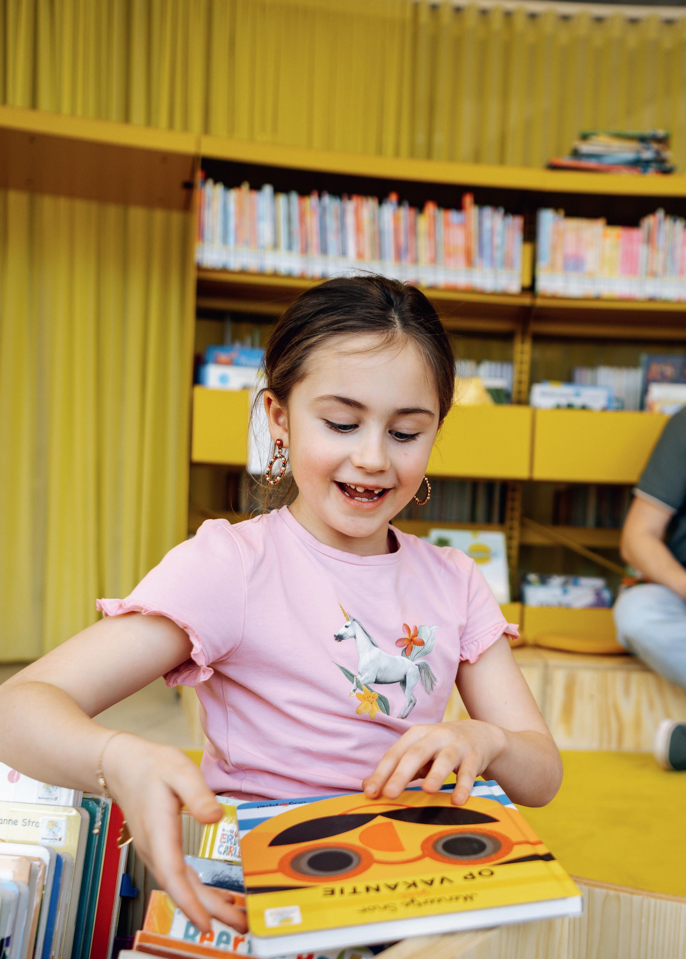 De gele zone aan de ingang is een paradijs voor de jongste lezers.