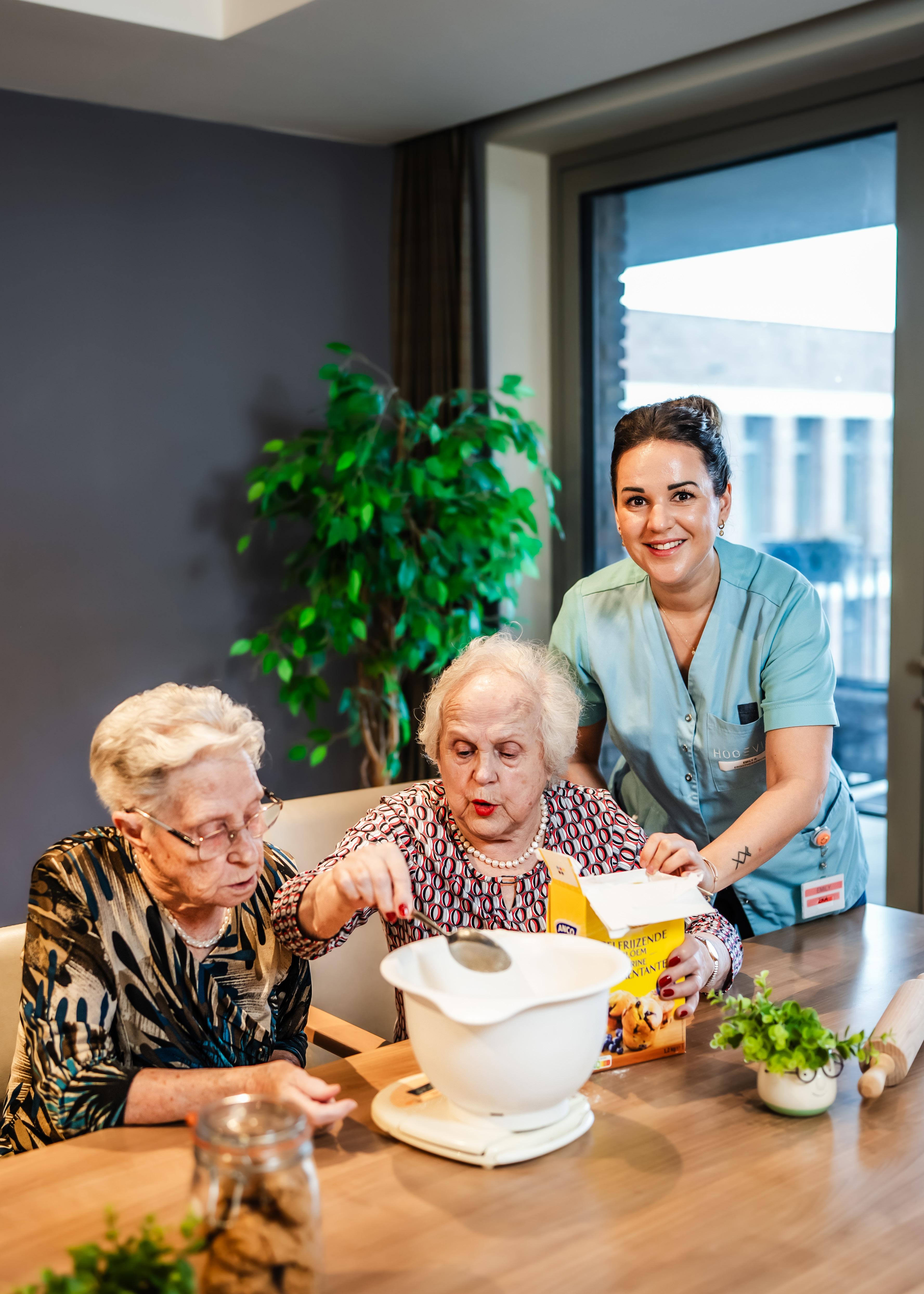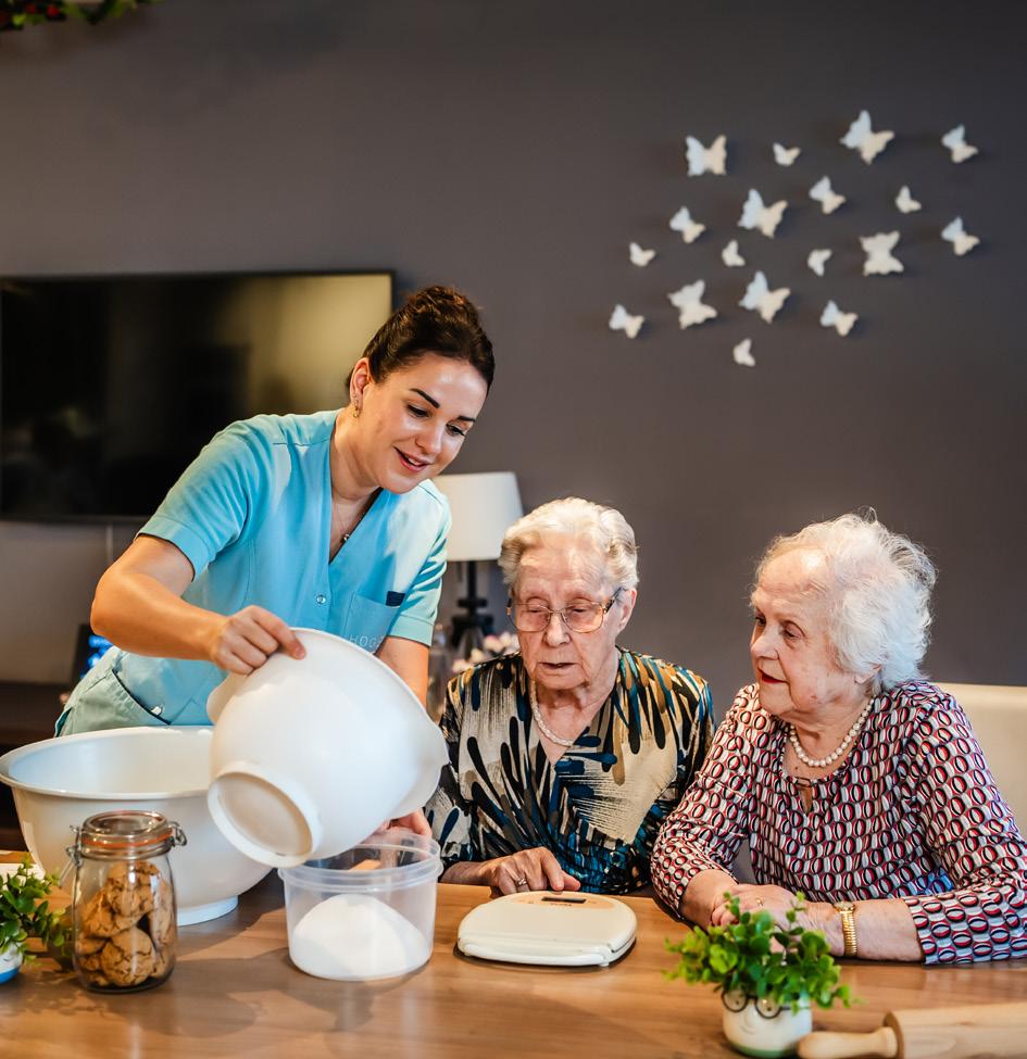 “En zie me hier nu staan”, lacht ze. “Na een vervangingscontract bleef ik toch in de sector plakken. Ik zou de bewoners niet meer kunnen missen. Senioren ondersteunen geeft zoveel voldoening. Met iedereen vind je wel een aanknopingspunt of een gemeenschappelijke interesse. Zo hadden we laatst een nieuwe bewoner bij wie de ochtendzorg moeizaam verliep. Zodra we ontdekten dat hij verzot is op dansen en muziek, kregen we hem vlot uit bed (lacht).”