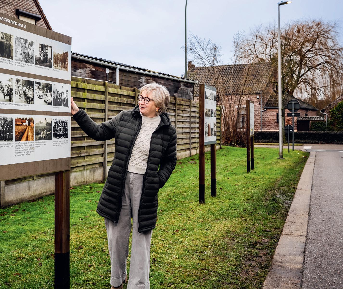 kleine leven in Spalbeek. Die verhalen verzamelde Greta na het overlijden van haar moeder. “Ik wilde meer te weten komen over ons dorp zoals het in de jaren stillekes was, maar omdat ik het mijn moeder niet meer kon vragen, sprokkelde ik anekdotes in de buurt. Voor ik het wist, had ik het hele dorp gesproken (lacht). De dorpsraad bundelde de verhalen in een expo in de kerk. De panelen verhuisden daarna permanent naar het Geheugenlaantje.”