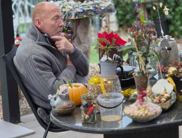 zijn. Jos maakt creaties met een grote diversiteit van materialen. Dat geeft hem rust en warmte. Spontaan biedt hij ons één van zijn creaties aan: ‘Want ik voel geluk als ik iets kan weggeven en ik wil liever geven dan krijgen. Ik heb nog een mooie collectie gitaren die ik niet meer kan bespelen. Hopelijk ontmoet ik iemand die wil leren gitaar spelen en kan ik op die manier iemand op een mooi groeipad zetten. Schrijf dat maar in uw bladje!’